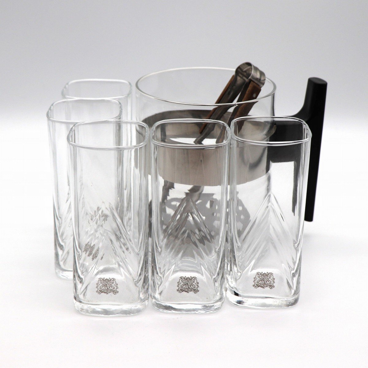 アイスペール(直径:約110㎜、持ち手込み:約155㎜、高さ:約140㎜)、グラス5個(幅:約60×55㎜、高さ:約129㎜)、状態ランク:B