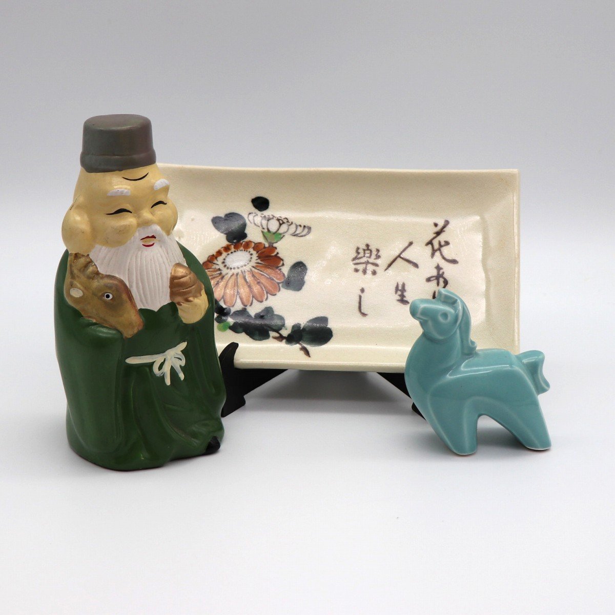 飾り皿(幅:約172㎜×98㎜、高さ:約16㎜)、寿老人人形(幅:約70㎜×70㎜、高さ:約145㎜)、馬置物(幅:約67㎜×30㎜、高さ:約75㎜)、状態ランク:C
