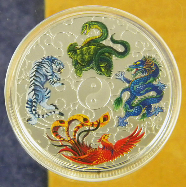 ★ 四神 (青龍 朱雀 白虎 玄武) ★ 金運 財運 開運 勝運 幸運 風水 ★ ラッキー メダル S[ケース付]