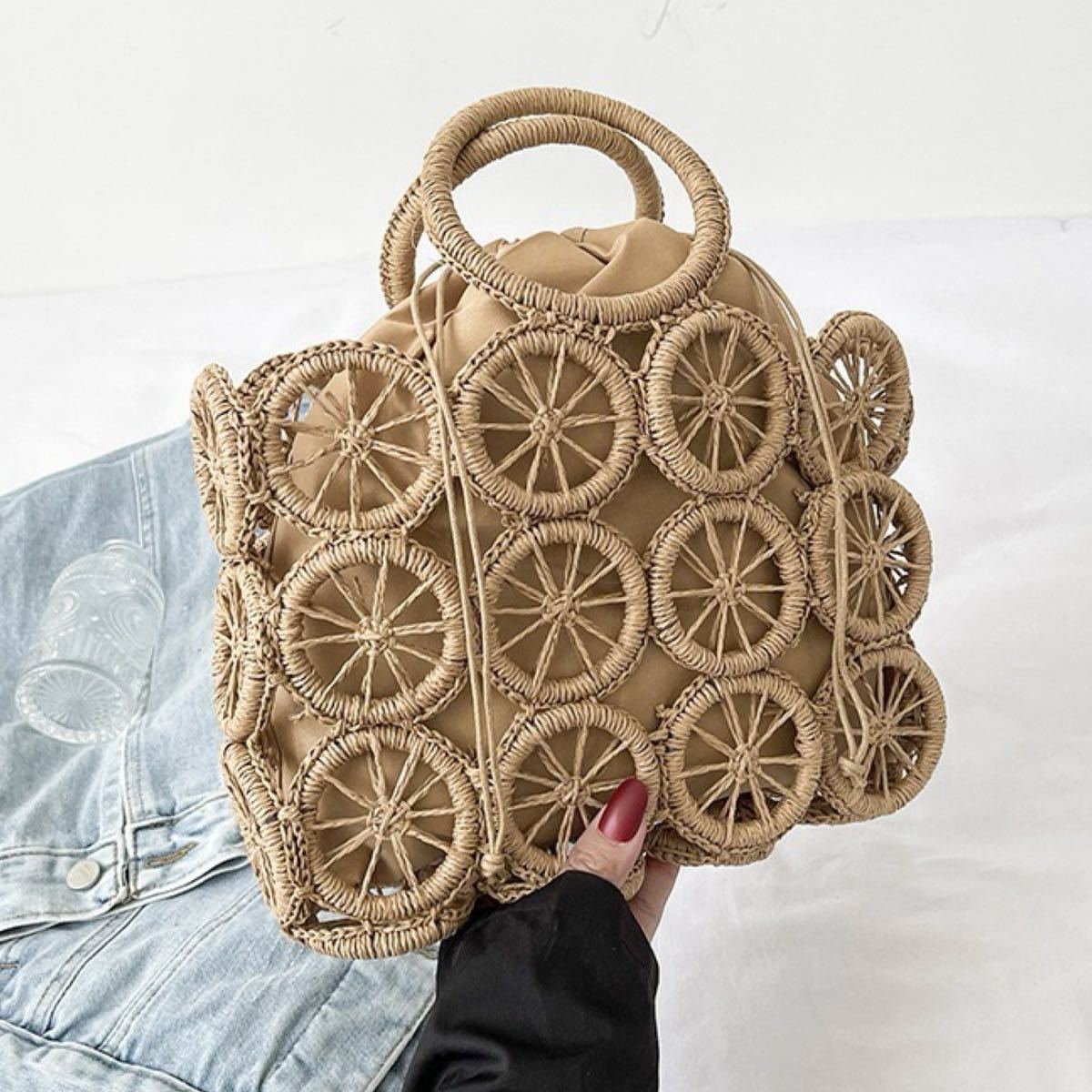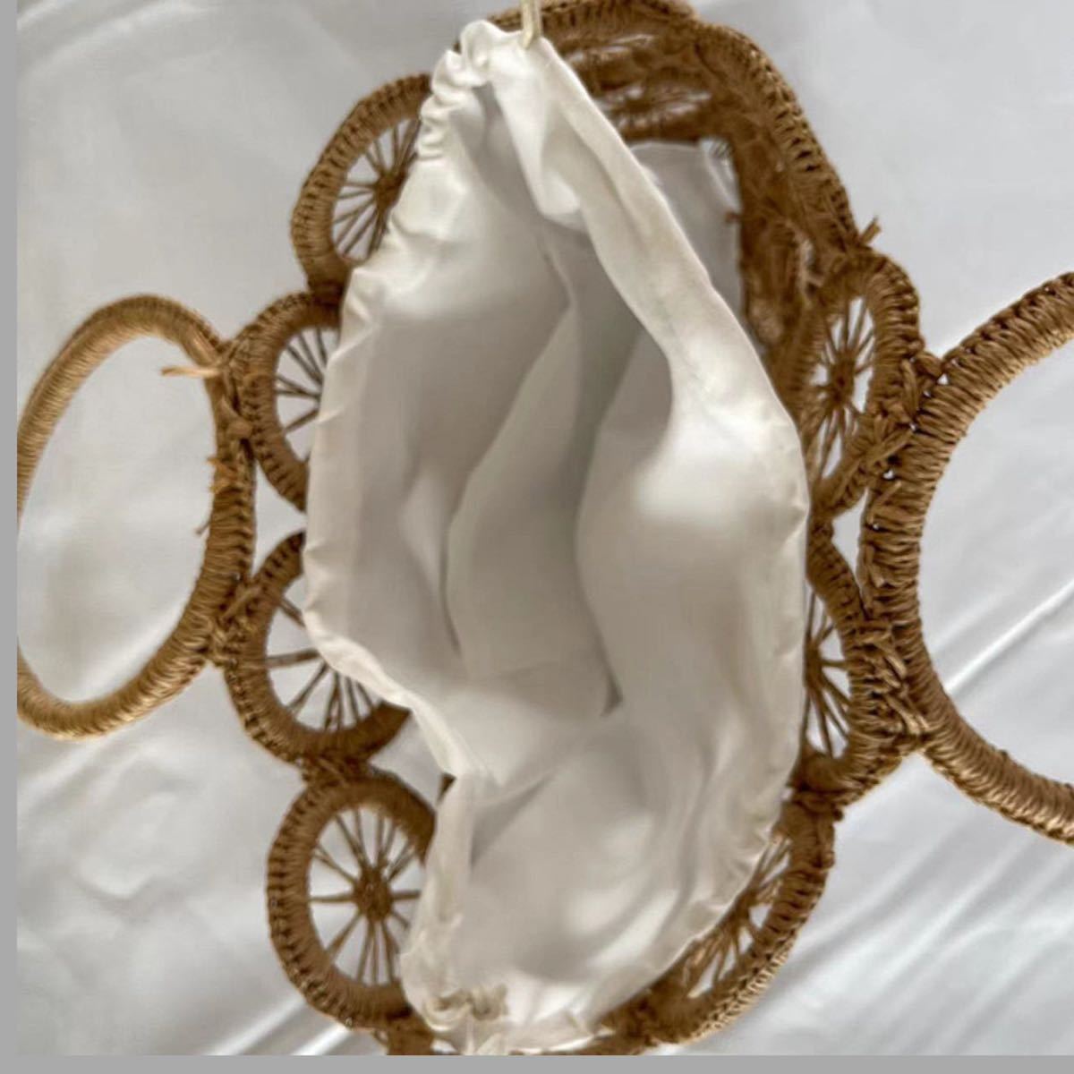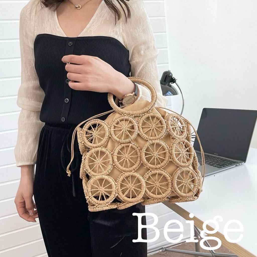 【 カゴバッグ バッグ 巾着 付き 鞄 カバン ハンドバッグ バスケット 編み込み ウッドハンドル トートバッグ ピクニック 】