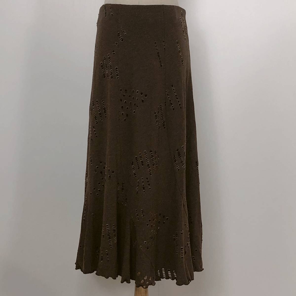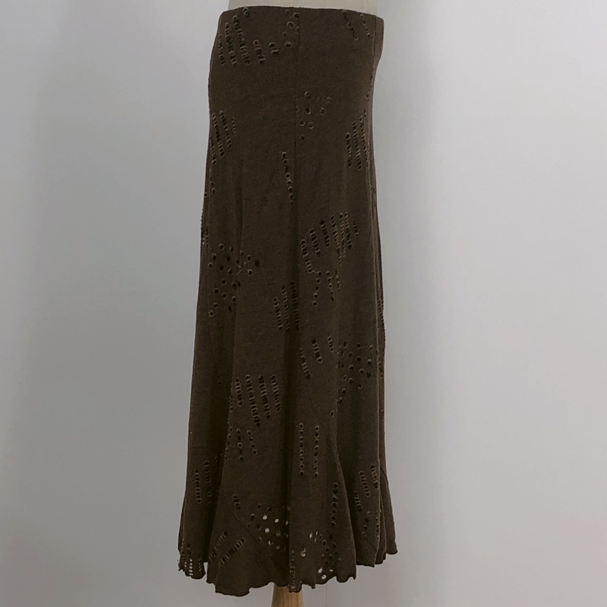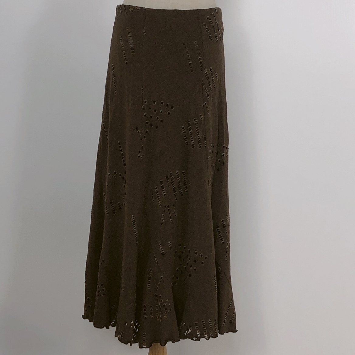 Y0618 レディース ボトムス フレアスカート ロング丈 韓国製 穴あきデザイン ブラウン 茶 個性的 おしゃれ シック エレガント 大人 春秋