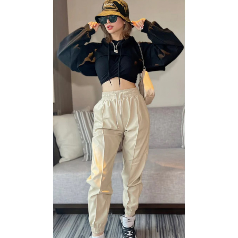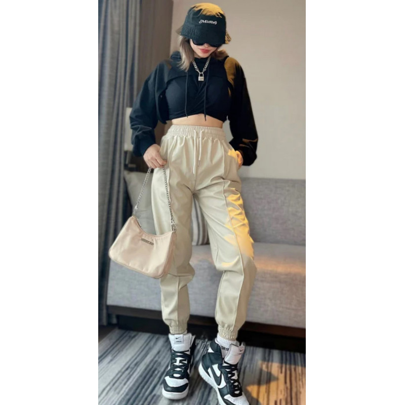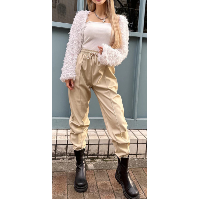 柔らかい合皮素材の生地を使用したジョガーパンツです。