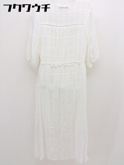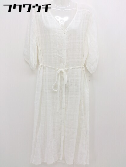 ◇ ◎ nano universe ナノユニバース Vネック ボーダー スリット 七分袖 ガウン サイズF ホワイト レディース