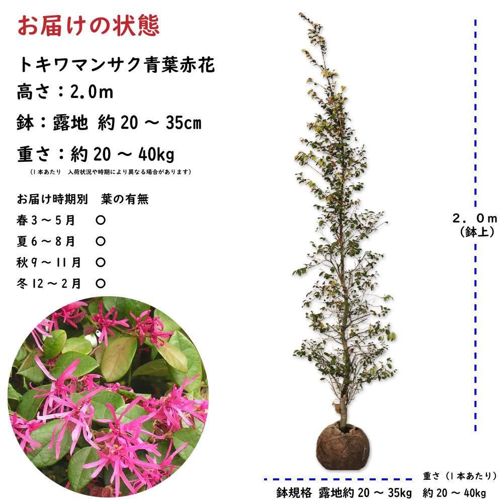 トキワマンサク青葉赤花 2m 露地 苗木