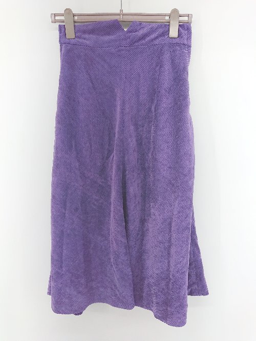 ◇ Khaju カージュ コーデュロイ 膝丈 フレア スカート パープル レディース P