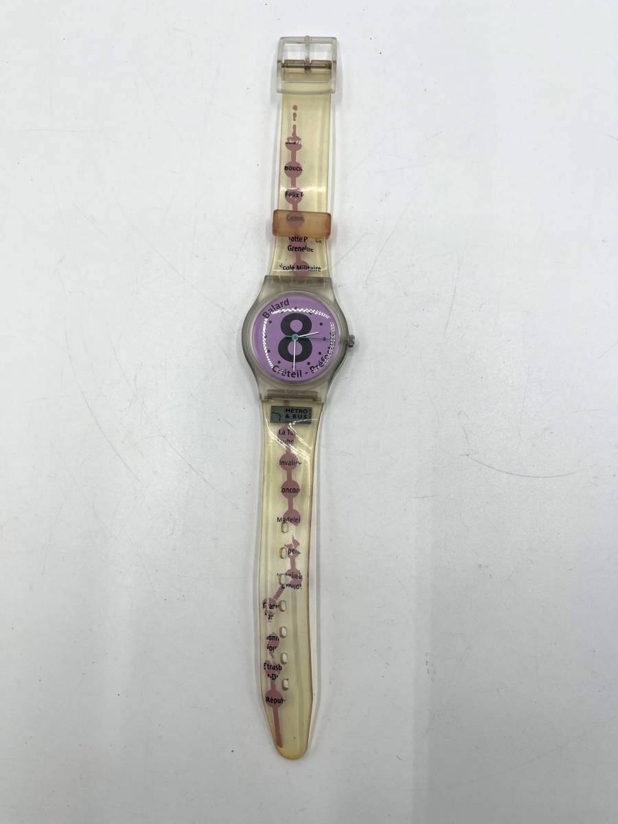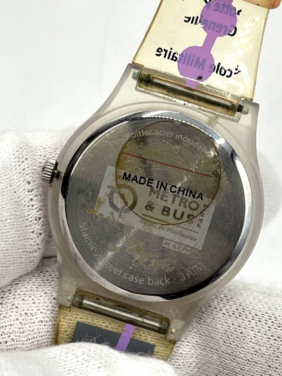 【電池切れ】METRO&BUS クォーツ 腕時計 パープル文字盤 ラウンド クリアベルト ボーイズサイズ