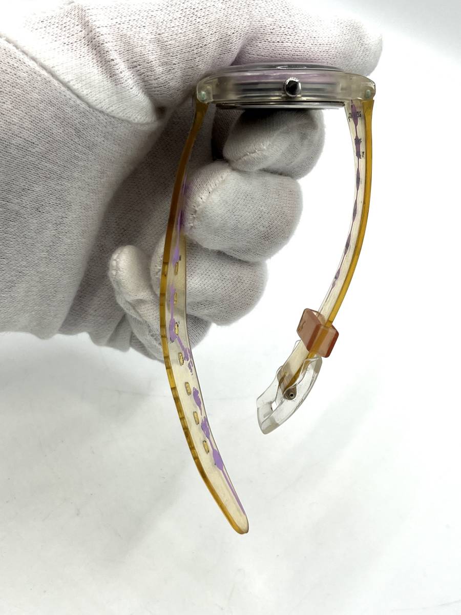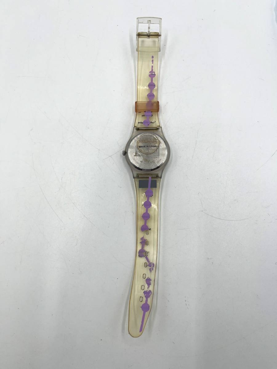 クォーツ 腕時計 パープル文字盤 ラウンド クリアベルト ボーイズサイズ