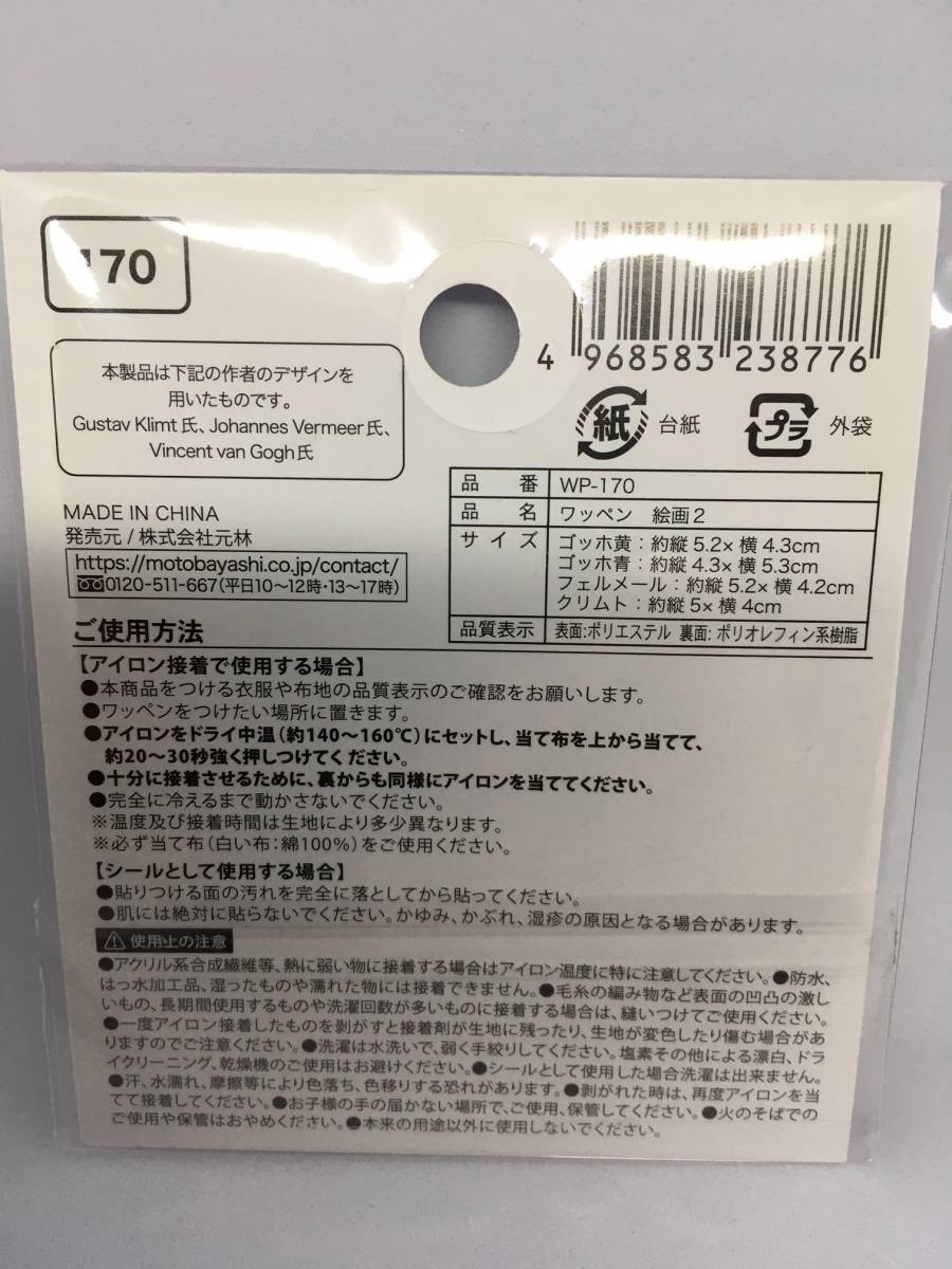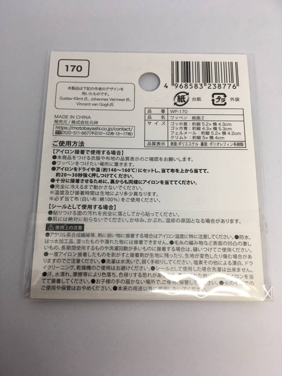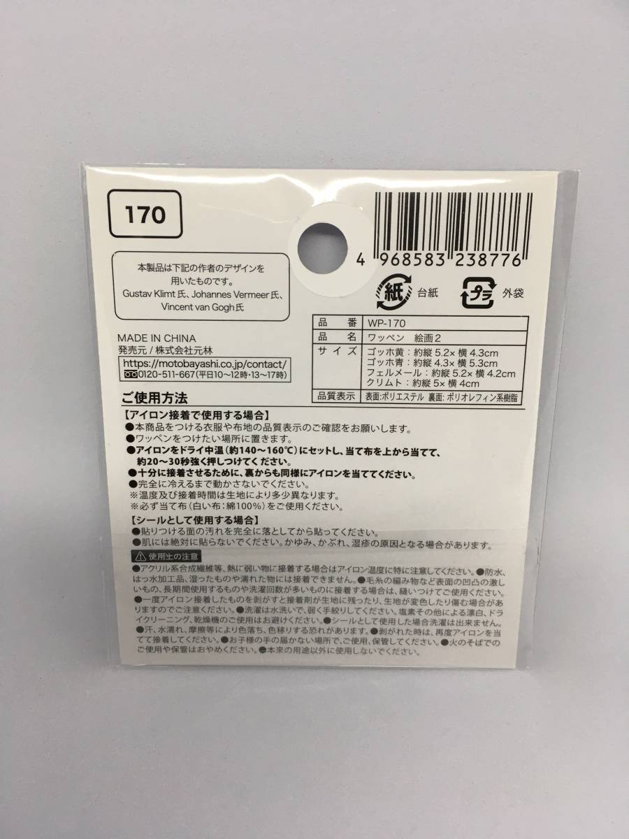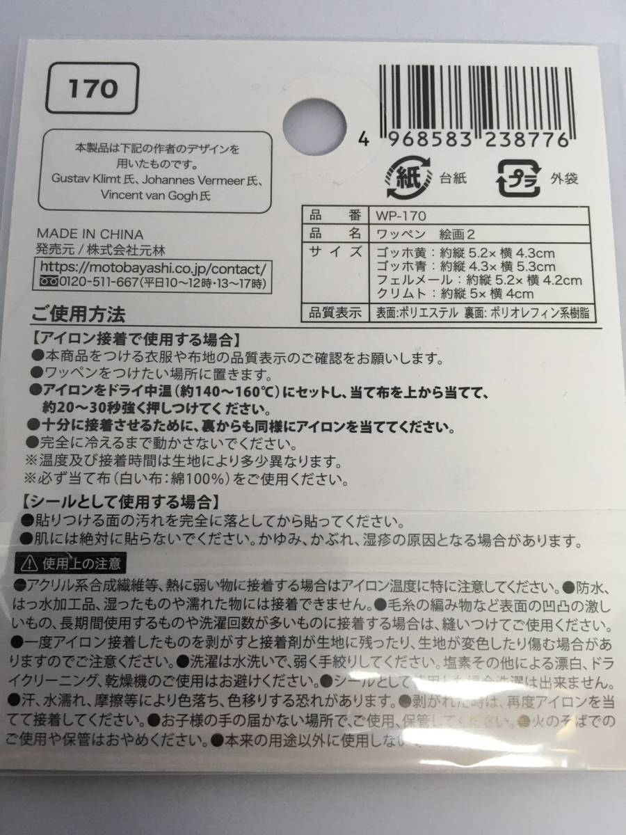 絵画ワッペン フェルメール 牛乳を注ぐ女です☆彡新品未開封品です!