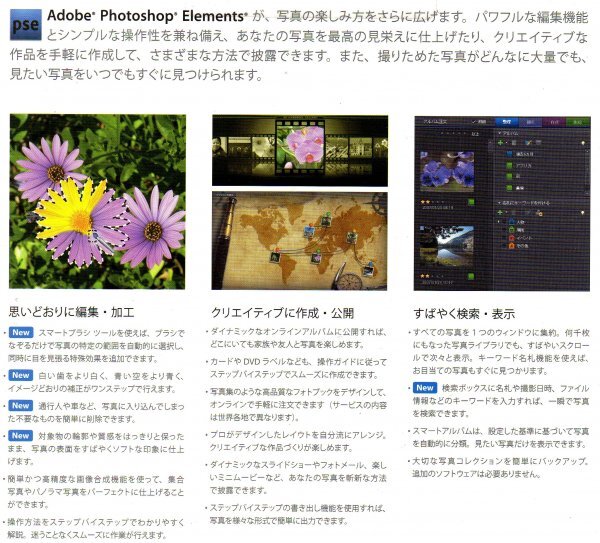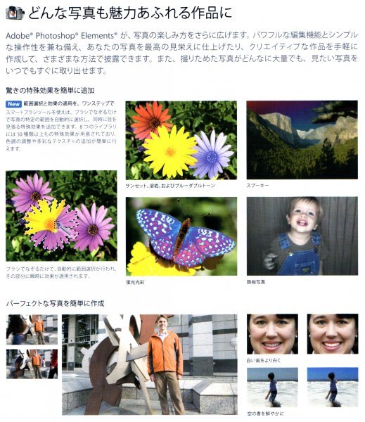 プロ向けの画像編集ソフトである「Adobe Photoshop」を一般向けにより使いやすくアレンジしたソフトです。