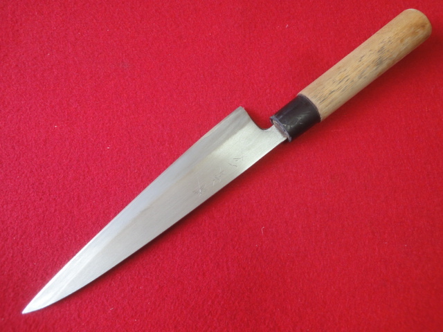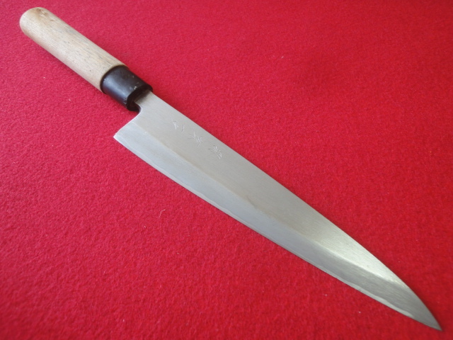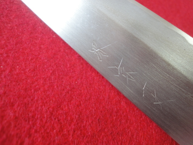 【在銘有】※堺刃物 身卸出刃包丁 ※本鍛錬 刃渡20.8㎝ 全長35.8㎝ 峰厚5.1mm ※片刃 中古品 全国一律送料1100円