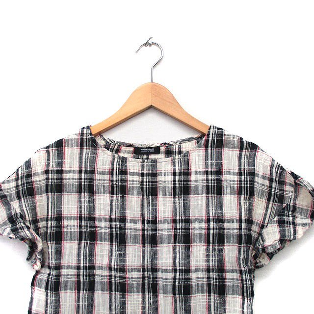 マウスバレー MOUTH VALLEY カットソー Tシャツ 半袖 コットン チェック ブラック 黒 /KT2 レディース