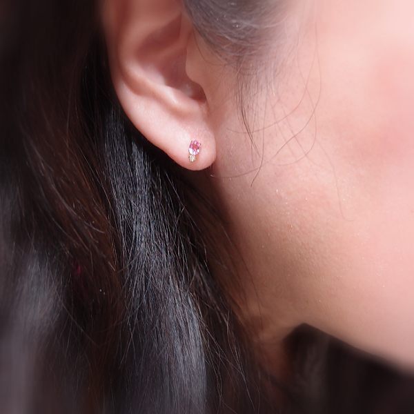 華やかなピンク色が魅力のピンクサファイアのスタッドピアスです。