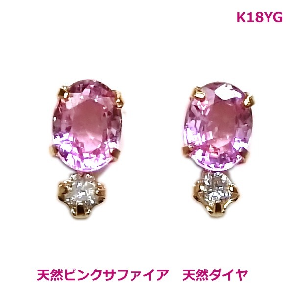 【送料無料】K18YG上質ピンクサファイア&ダイヤスタッドピアス■IA1809-1