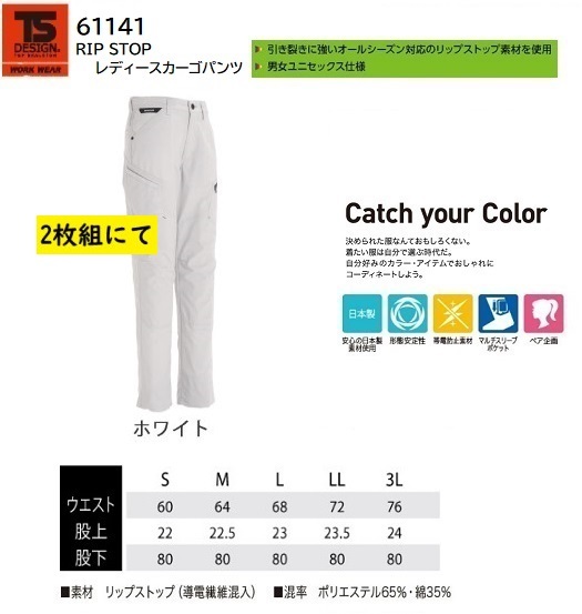 ビックイナバ特価◆TSDESIGN 61141 RIP STOPレディースカーゴ【05ホワイト・LLサイズ】定価1枚8360円の品が、2枚組で即決2980円