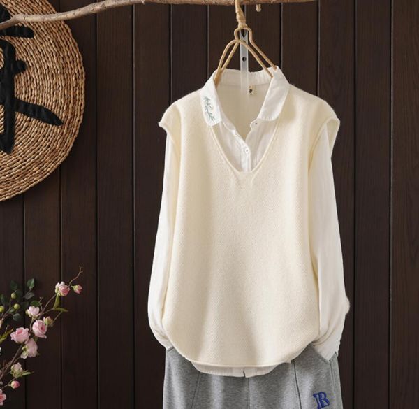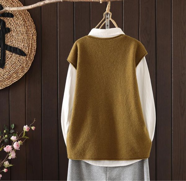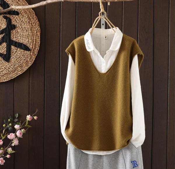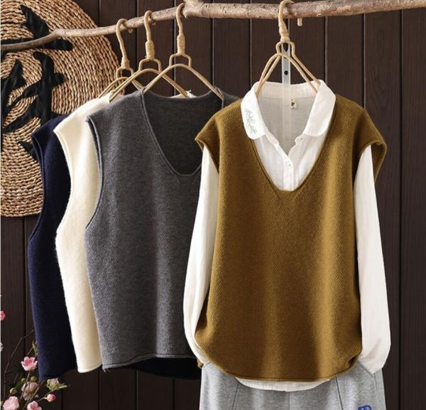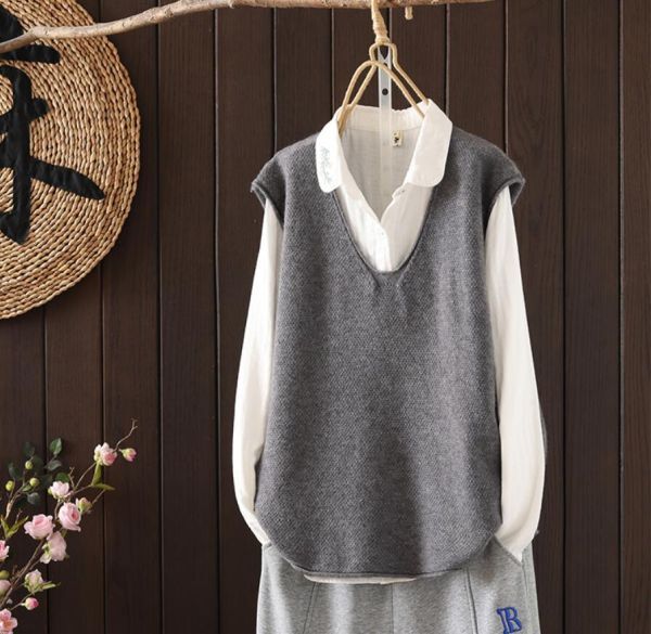 新入荷 ~ 上質 おしゃれ ベスト ウール混 ニット Vネック 無地柄 袖なし ニットセーター ベスト ~  グレー