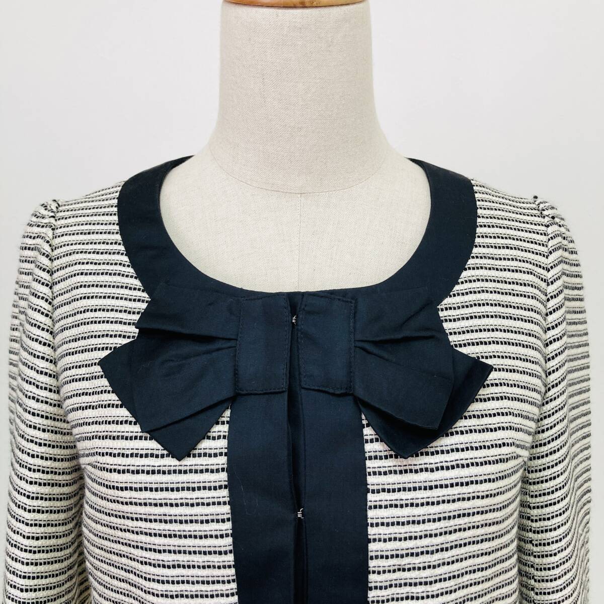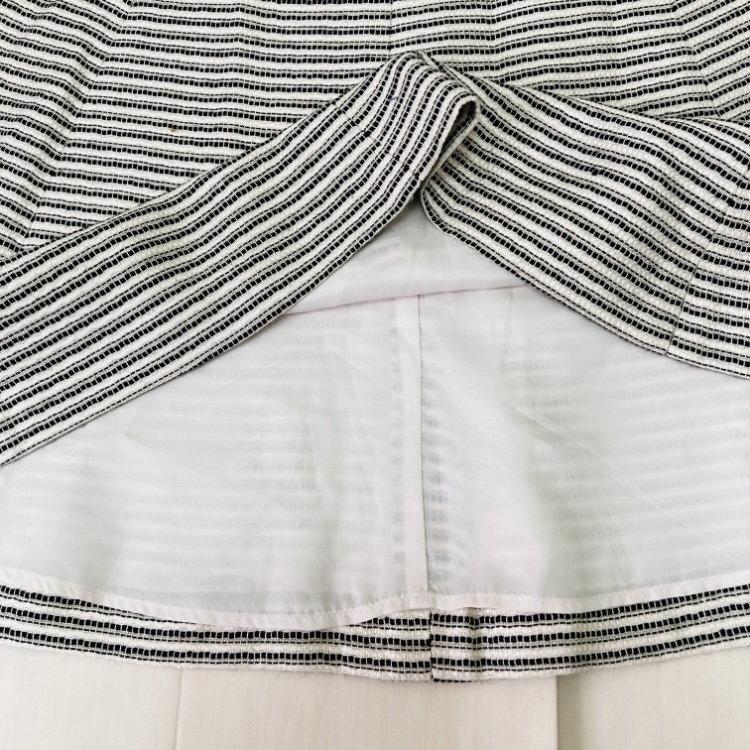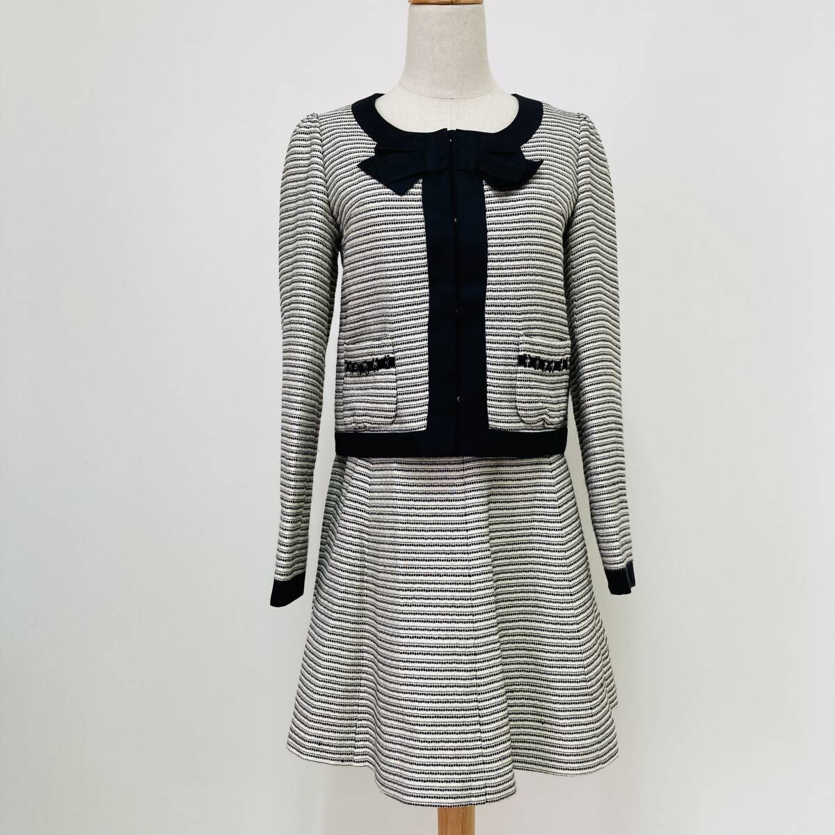 a03805 Cynthia Rowley シンシアローリー セットアップ ジャケット スカート リボン 裏地 膝丈 2 白 黒 古着 フォーマルイブニングウェア