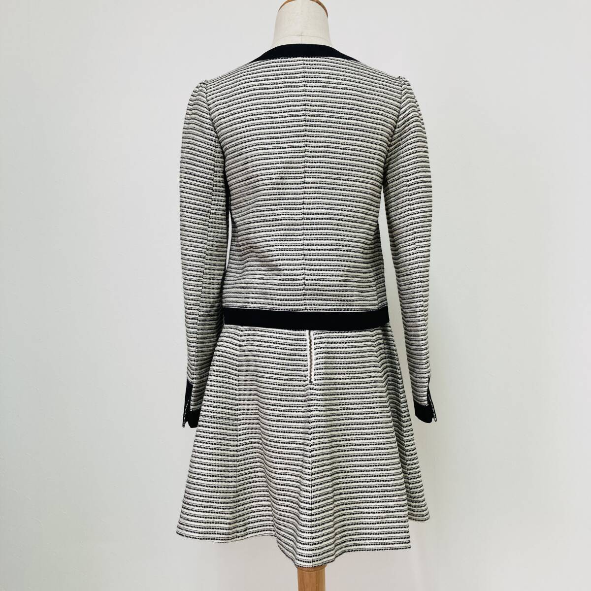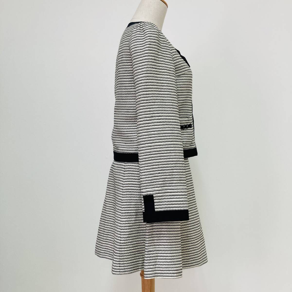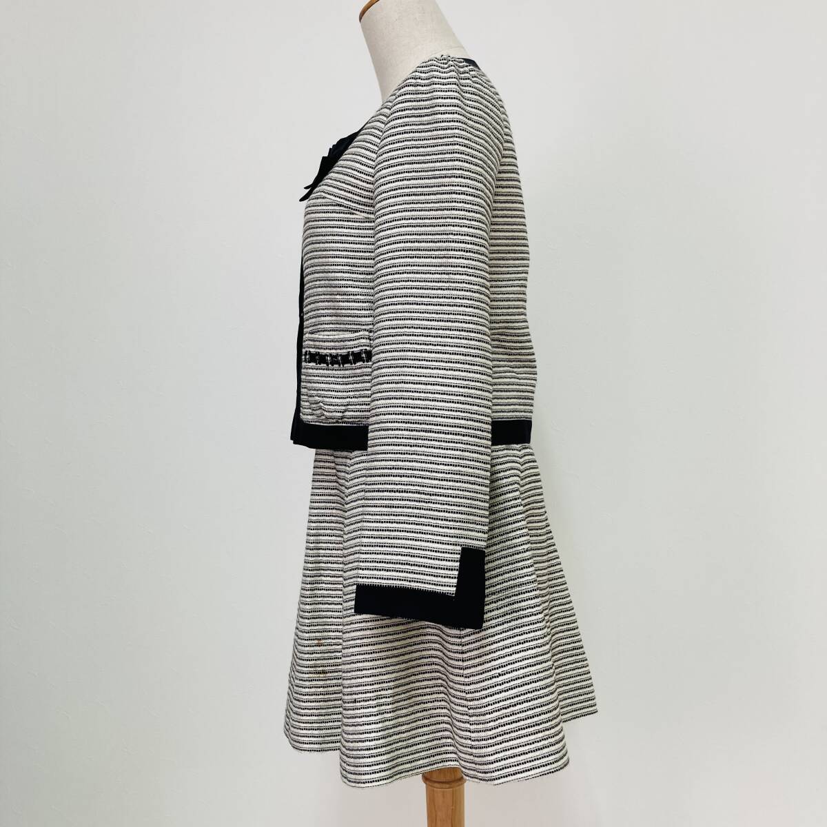 a03805 Cynthia Rowley シンシアローリー セットアップ ジャケット スカート リボン 裏地 膝丈 2 白 黒 古着 フォーマルイブニングウェア