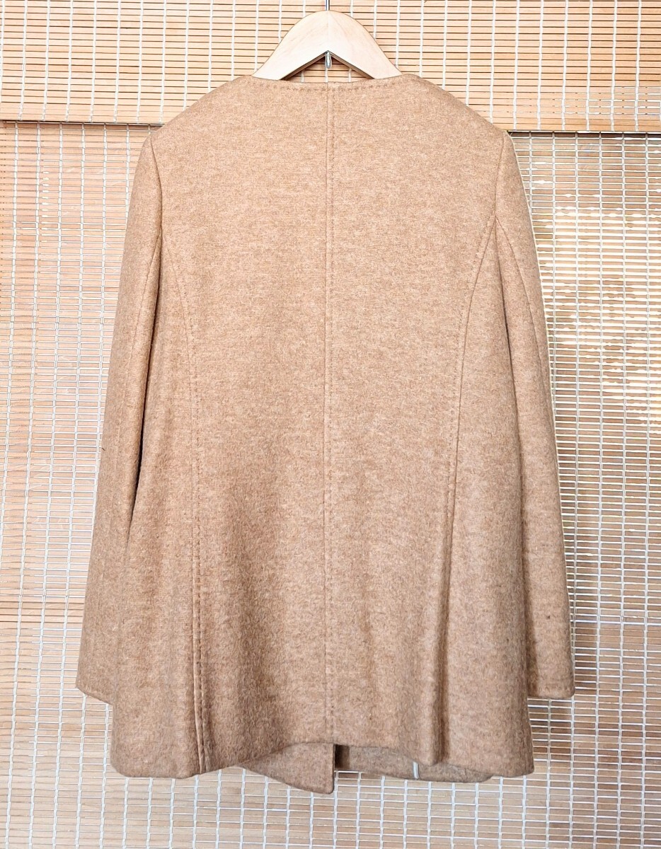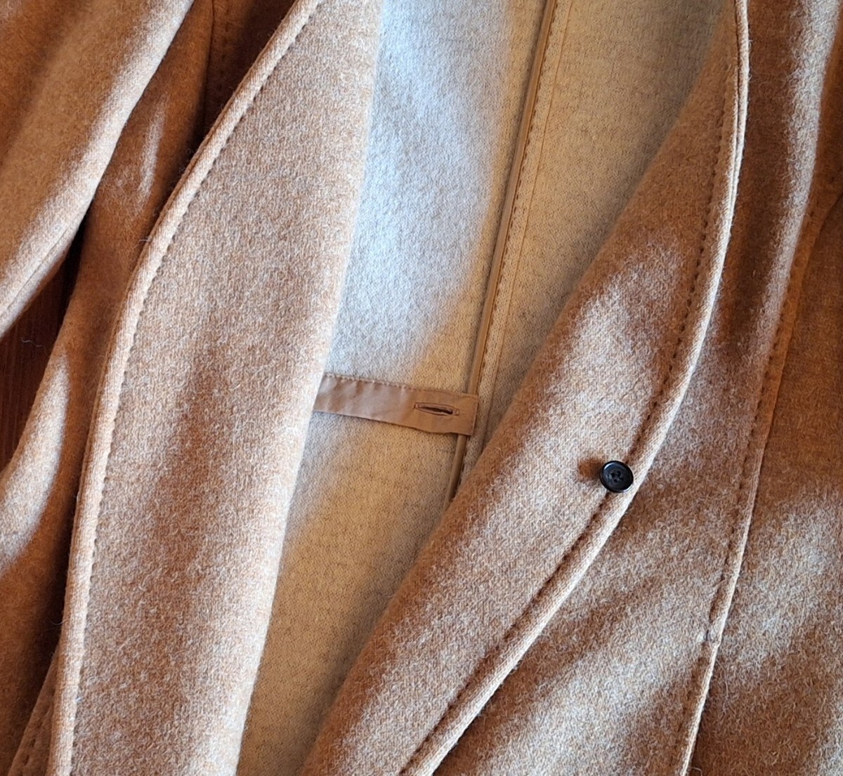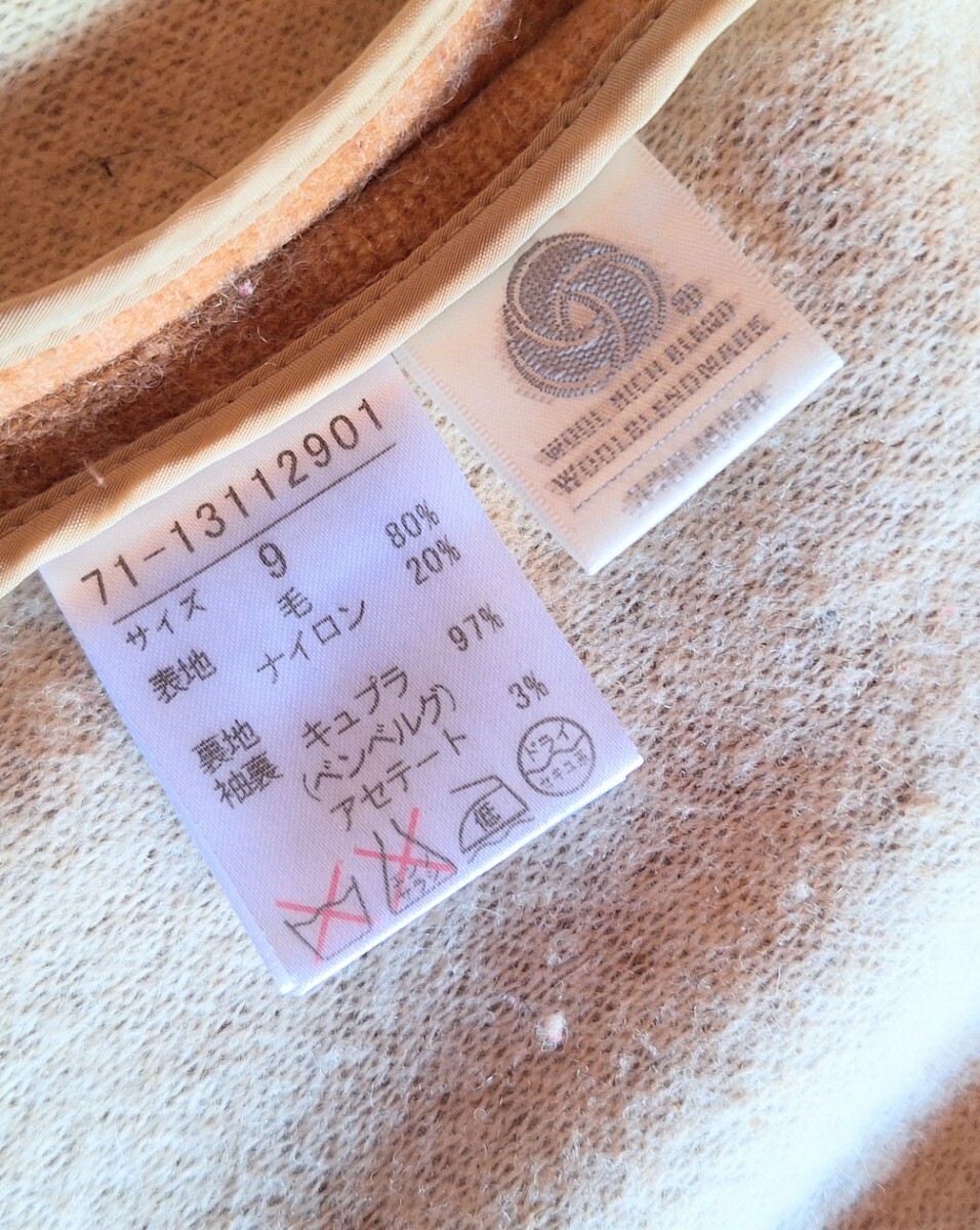 ★発送方法★首回りスッキリのVネックでボタンはなく着流しジャケットになります上質は素材で高級感があります綺麗な着用ラインでキャメルカラーは上品に見せてくれるお勧めのジャケットです画像は若干薄いお色で写っているかもしれません多少の毛羽たち感はございますが目立つ大きな難はなく全体的には良好です※実物に近いお色が出るように撮影しておりますがモニター環境により相違が生じる場合がございますのでご了承くださいませクリーニング済みです保管や洗濯によるしわについてはご容赦ください完璧をお求めの方、神経質な方はご遠慮くださいませ中古品をご理解いただいて入札をお願い致します【サイズ】 9【実 寸】 肩幅:37cm 身幅:約48cm 袖丈:約58cm 着丈:約67cm(襟下後ろ中心)【素 材】 表地:毛80% ナイロン20% 袖裏:キュプラ97% アセテート3%※素人の平置き採寸になりますので多少の誤差はお許しください