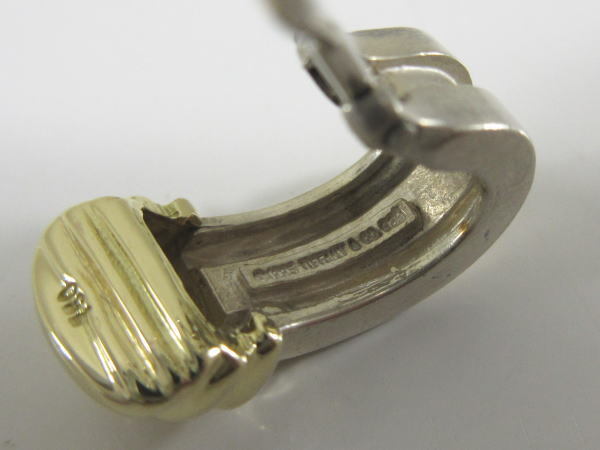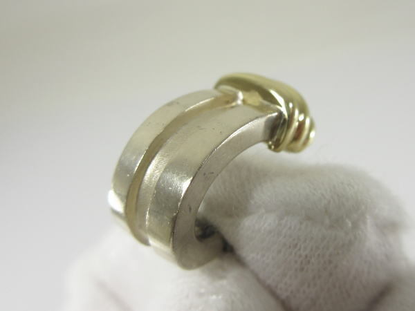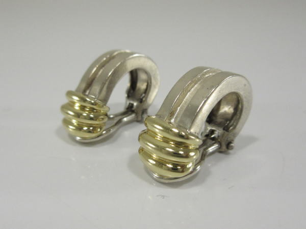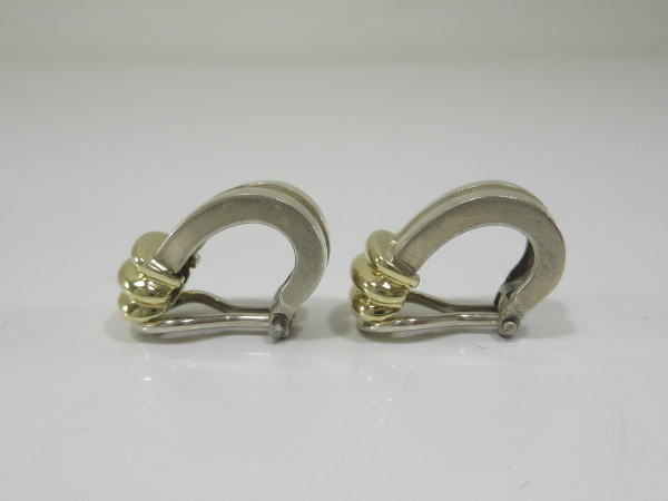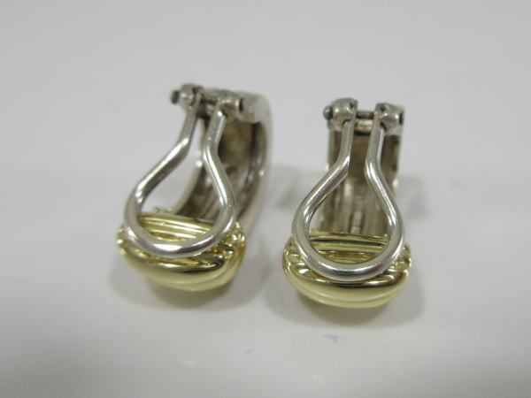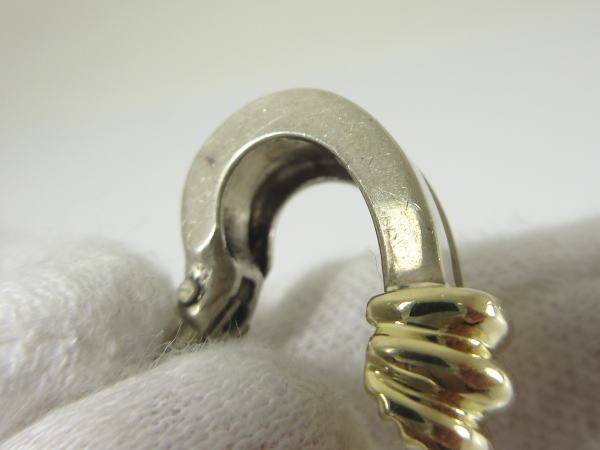 | コメント | 緩やかにカーブを描いたシルバーのイヤリングにK18の3連のフープがデザインされたおしゃれなアイテムです。 使用に伴う傷、シルバー独特の変色がございます。 |