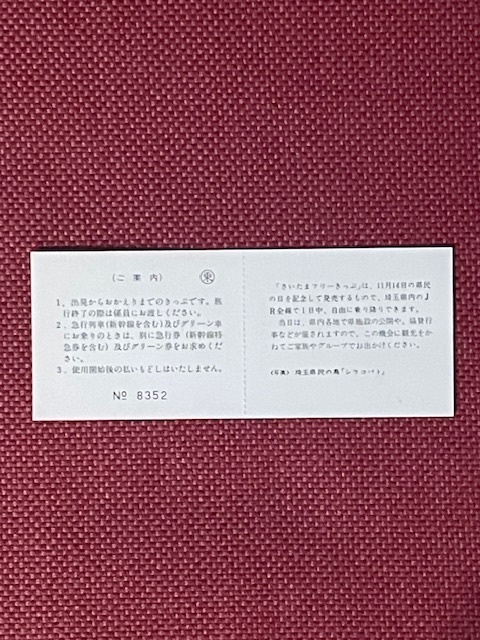 JR東日本 昭和62年 埼玉県民の日 さいたまフリー乗車券 (管理番号11-14)