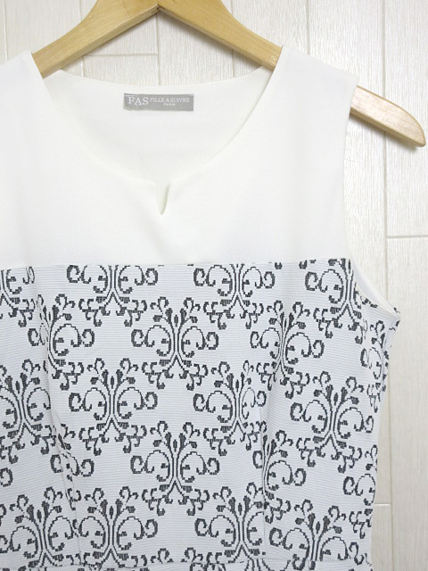 | 【ファス フィーユアスイーブル FAS FILLE A SUIVRE】 フランス製 ワンピース ノースリーブ タック フレア カットワーク刺繍 ストレッチ ホワイト レディース | |