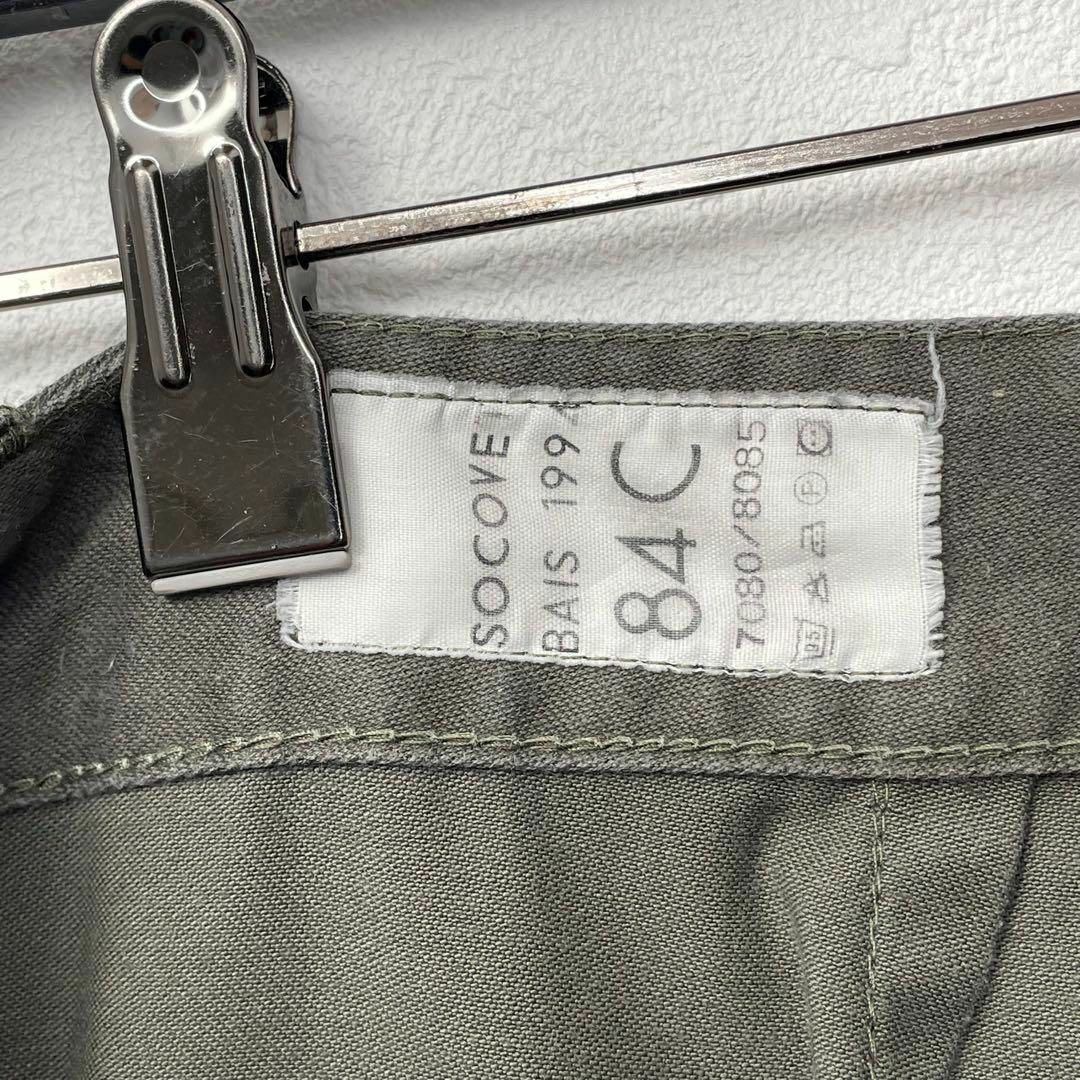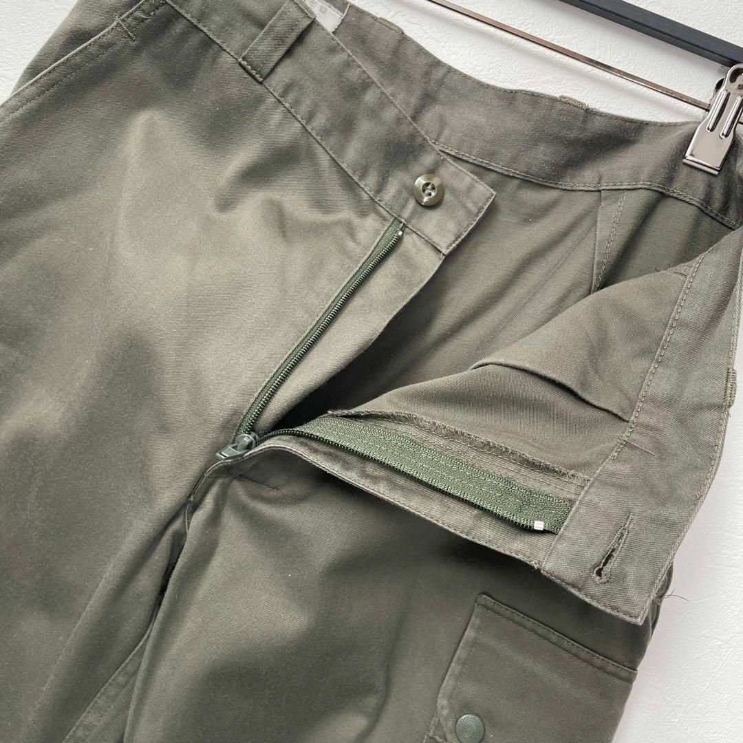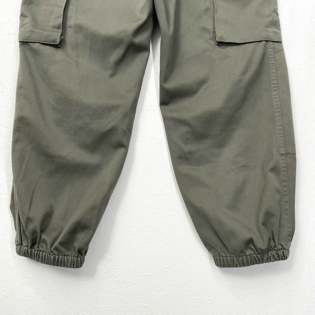 パラシュート部隊がブーツを履いて使用する為、9分丈程度の長さで、裾にはゴム(絞り)がはいっていますのでブーツ、スニーカー、サンダルなど合わせやすいです。