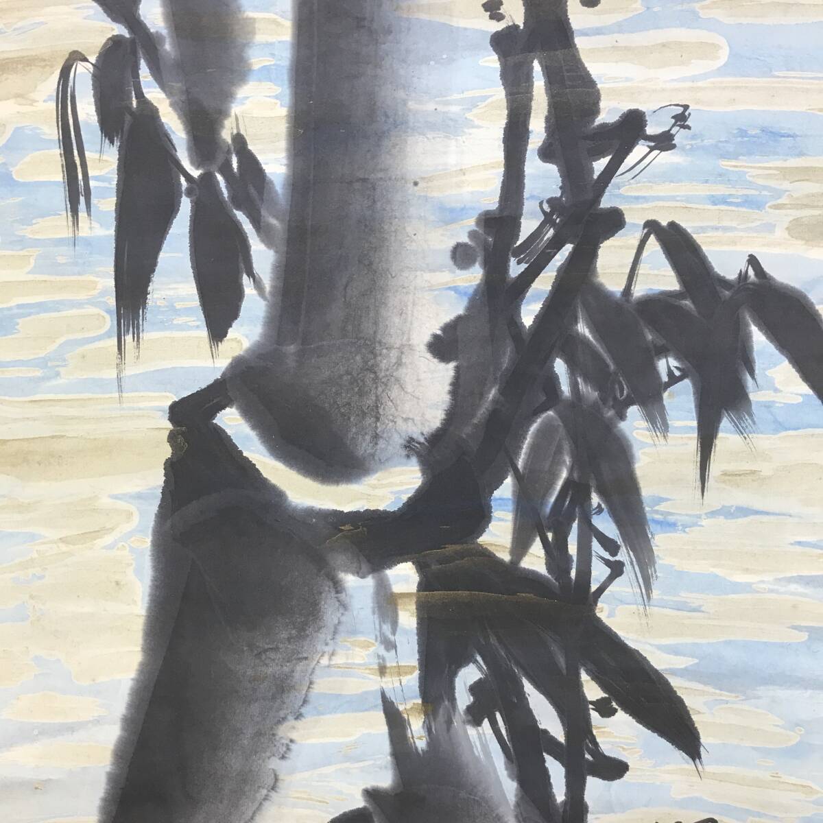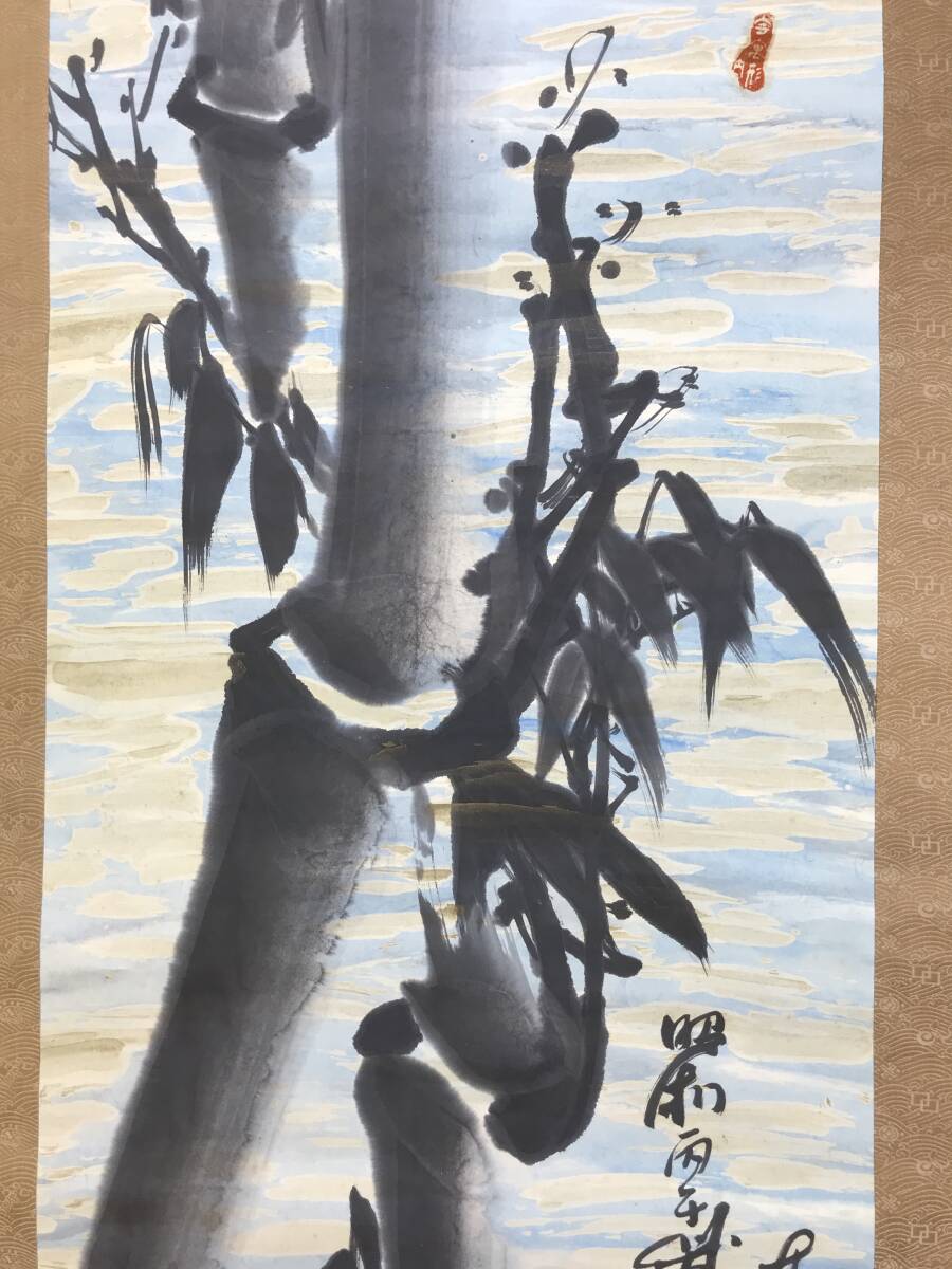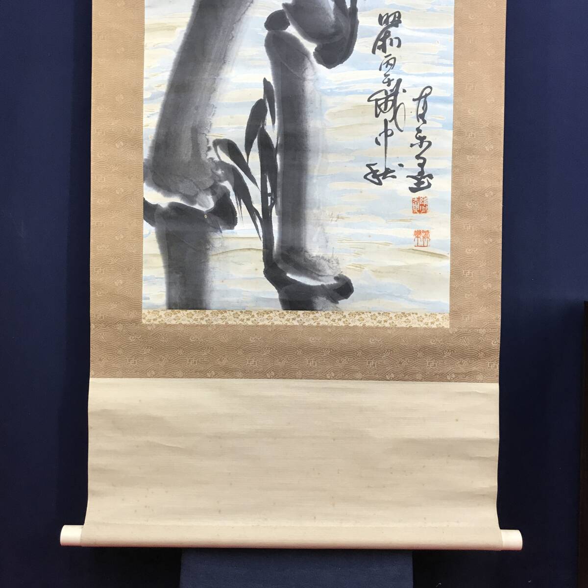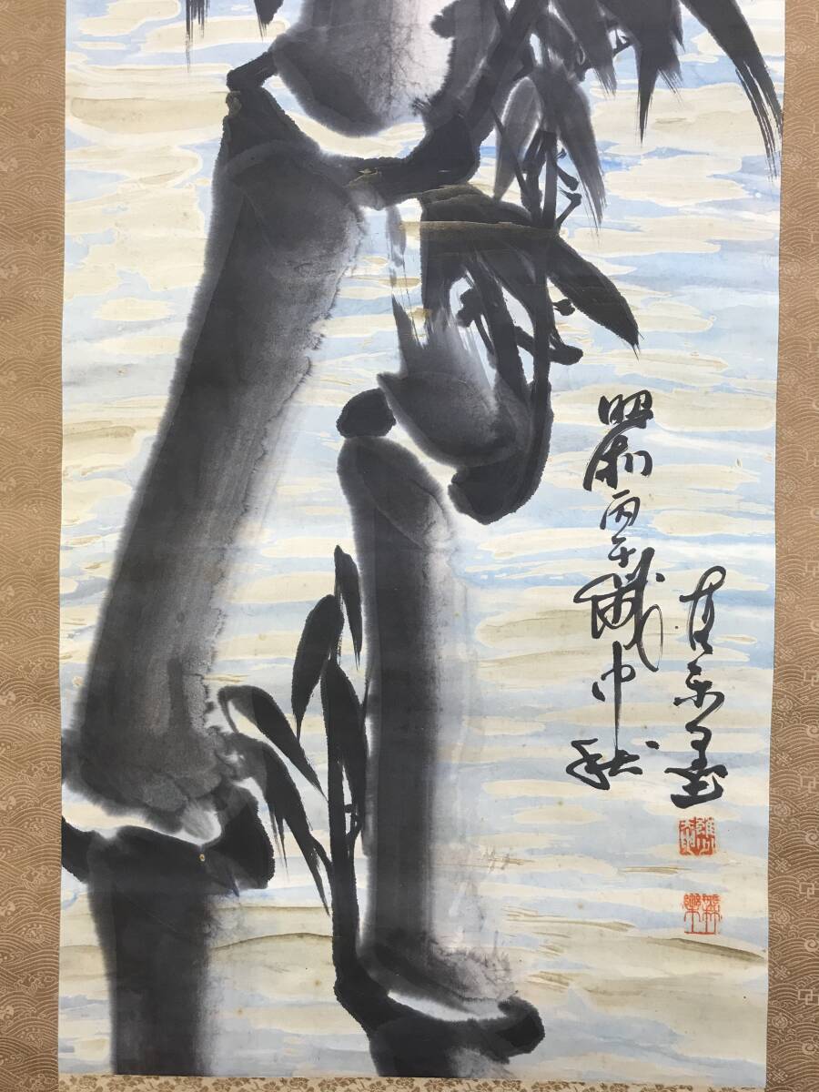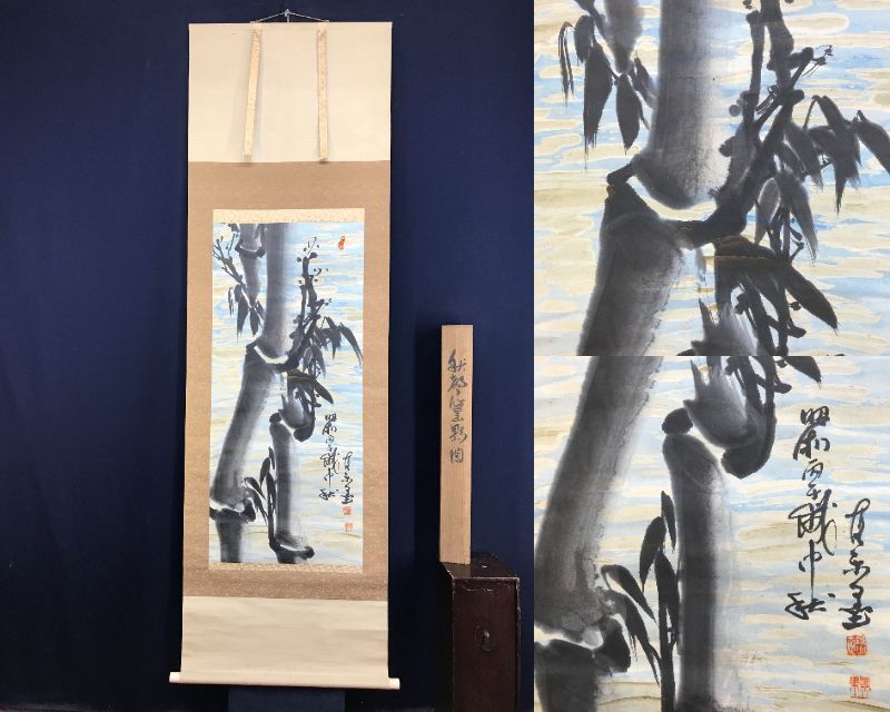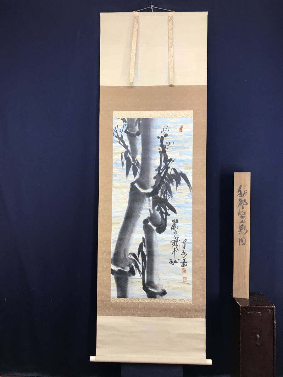 真作/無楽/秋聲篁影図/竹画賛/竹図/掛軸☆宝船☆AF-124
