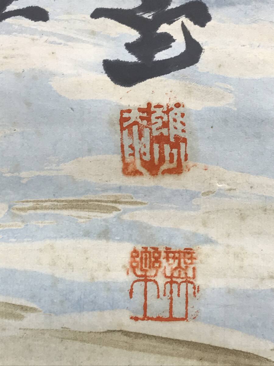 【作品状態】 本紙は紙本です。本紙は多少の汚れシミあります。表装は天地に薄汚れ、多数の糊シミあります。
