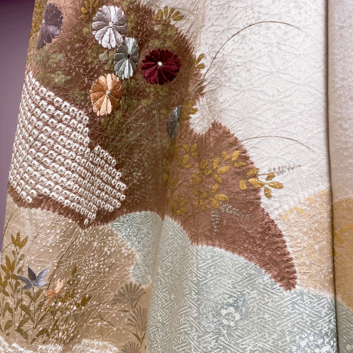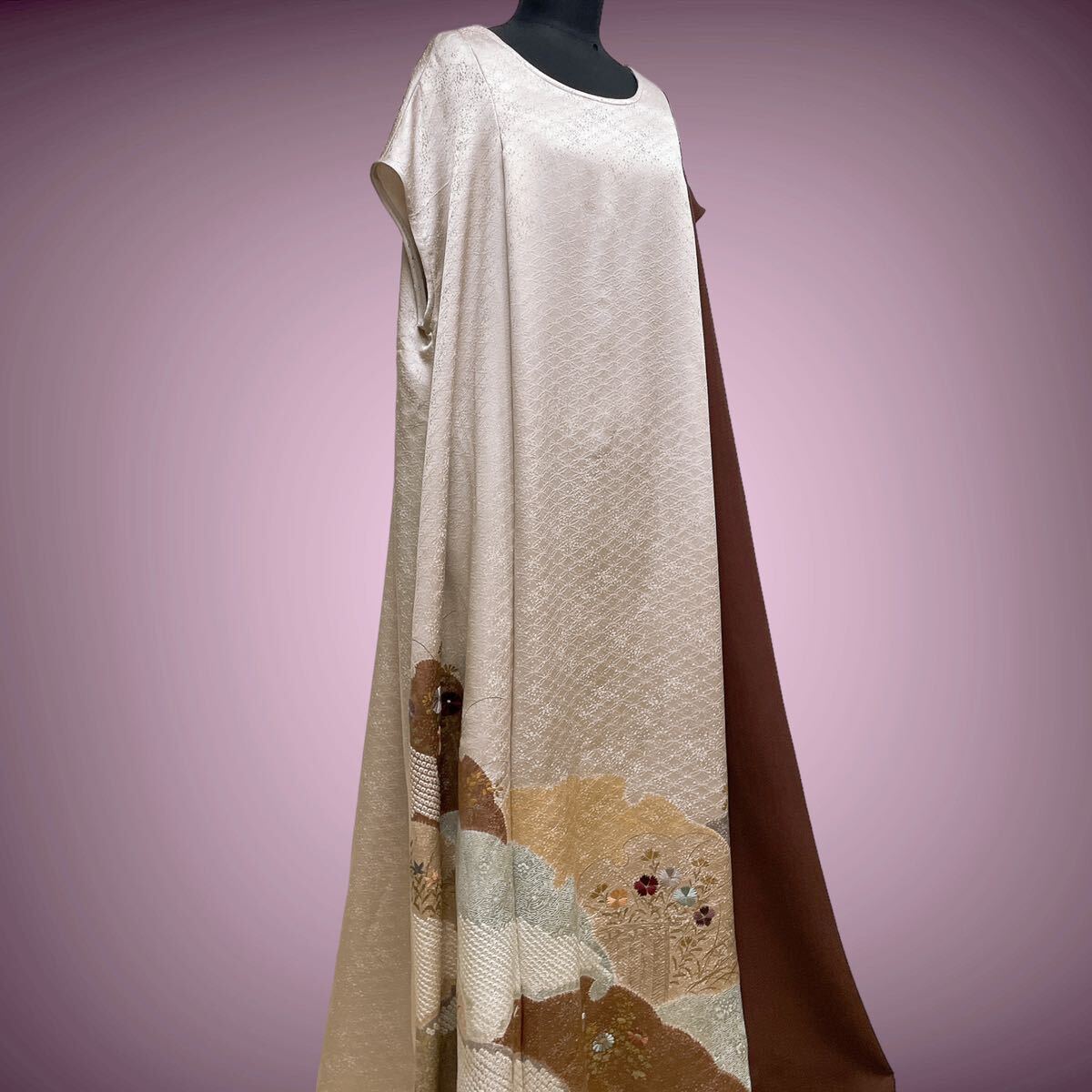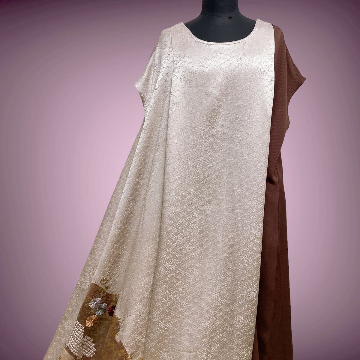 【心和】逸品 優美なアクセントカラーワンピース 着物リメイク フォーマル 結婚式 和柄 A6308