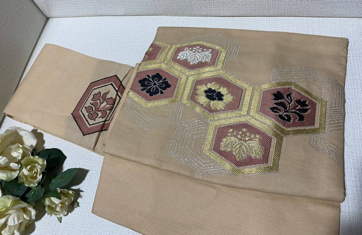 亀甲模様のお太鼓 二部式作り帯 着物帯 和装