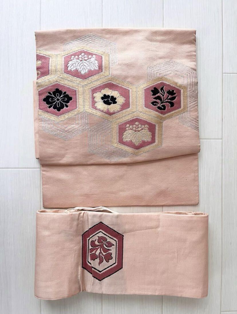 淡い桃色に、金糸や銀糸で亀甲模様が入っており、とても可愛らしいです☆