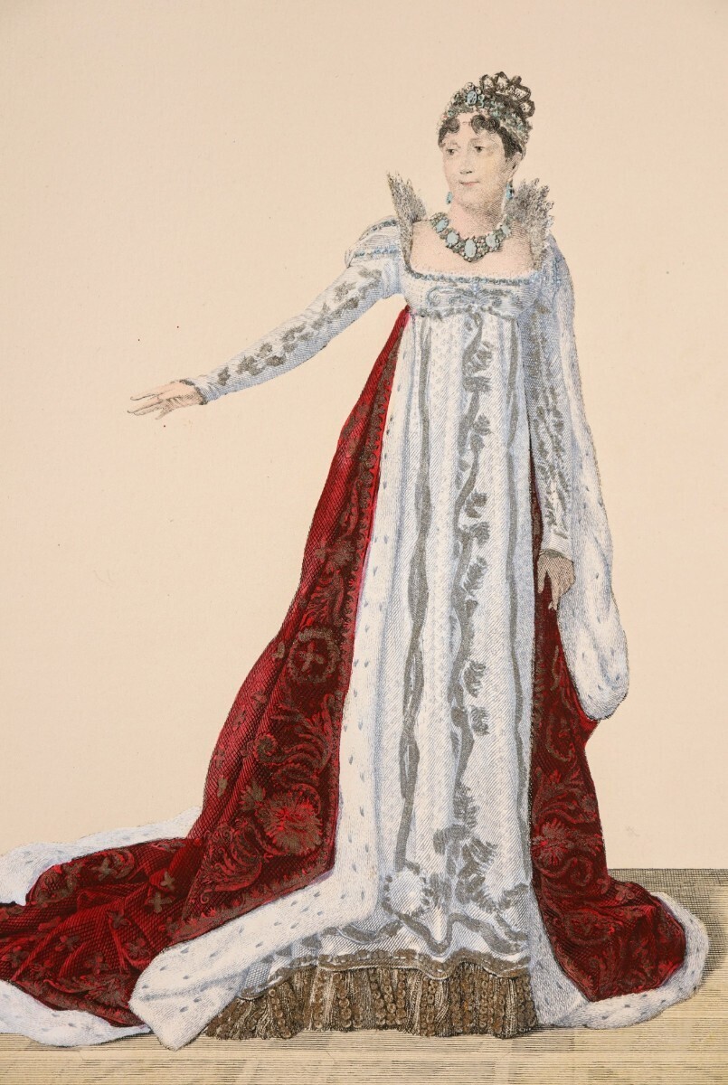 真作 ピエール・オードワン カルコグラフィー銅版画「グランド・コスチューム 盛装した皇后」画58×82cm 仏人作家 戴冠式の版画集より 8739