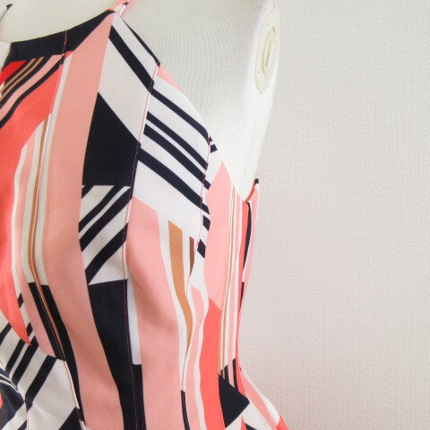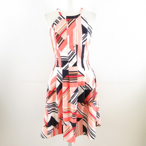 ヴィンスカムート VINCE CAMUTO キャミワンピース ミニ 総柄 ストレッチ ピンク オレンジ 6 *A584 レディース