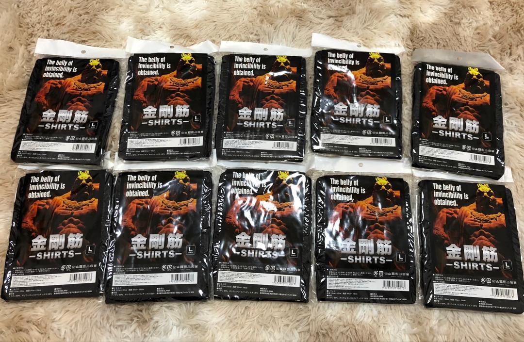金剛筋シャツ 半袖 黒 Lサイズ 10枚セットです。新品未使用です。 加圧シャツの中でも有名で、シリーズ累計1,000,000枚突破した事でも知られております。 金剛筋シャツは高機能性下着の生産実績30年以上のISO認証を受けた工場と提携し、温度湿度をコントロールした専用の環境において、イタリア製の縫製機で編み込んでおります。 高品質弾性繊維「スパンデックス」を使用。加圧力=弾性繊維の量(生地の弾力性)です。金剛筋シャツは大手繊維メーカーの「スパンデックス」を使用しております。 日本の薬剤メーカーの抗菌剤「アモルデン」を使用しており、繊維検査におけるグローバルテストセンターであるカケンセンターの試験において抗菌効果が認められています。 【適応サイズ】M:身長162cm~175cm/胸囲:84cm~96cm,        L:身長172cm~185cm/胸囲:94cm~106cm 【素材】ナイロン80%, ポリウレタン(スパンデックス)20%、※抗菌防臭成分「アモルデン配合」 通常のシャツと同様に爪を立てずに上から着用ください。 新品未使用で自宅保管品です。 見落としなどもあるかもしれないです。ご理解頂ける方よろしくお願いします。神経質な方は御遠慮ください。 数量の増減、白黒のミックス、サイズのミックス等、お気軽にご相談ください。 送料込みです。ヤマトで出荷予定です