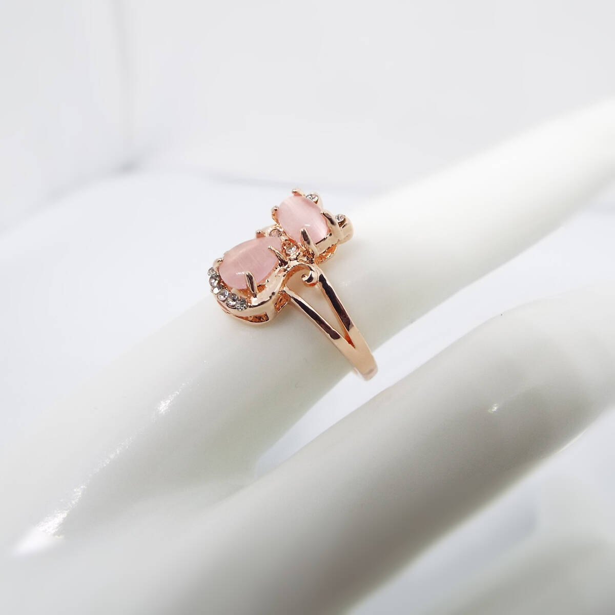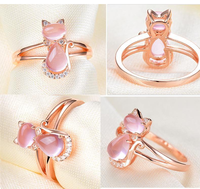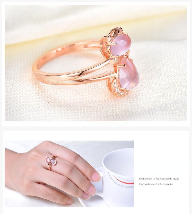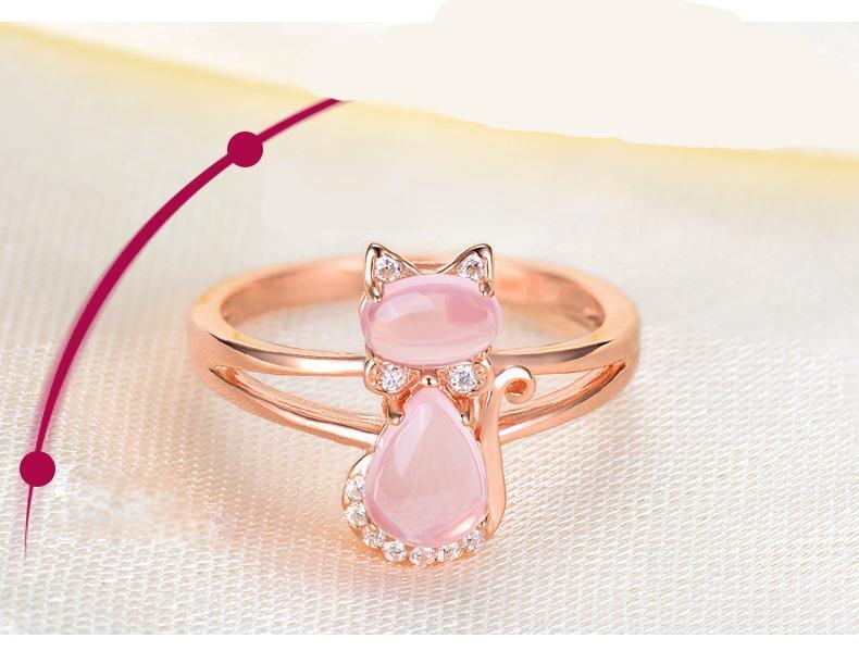 18KGP ジルコニア ローズクォーツ 猫リング ピンクゴールド 指輪