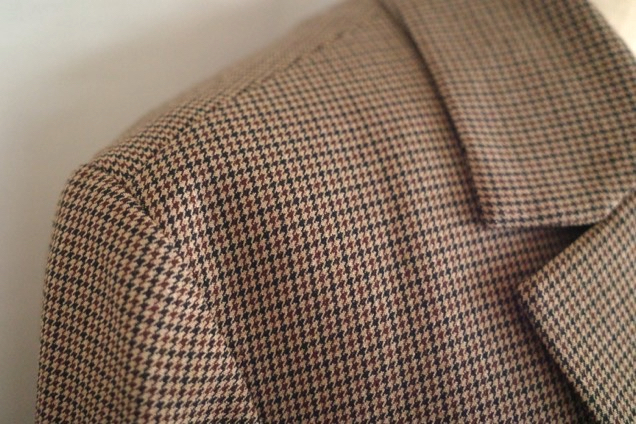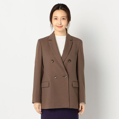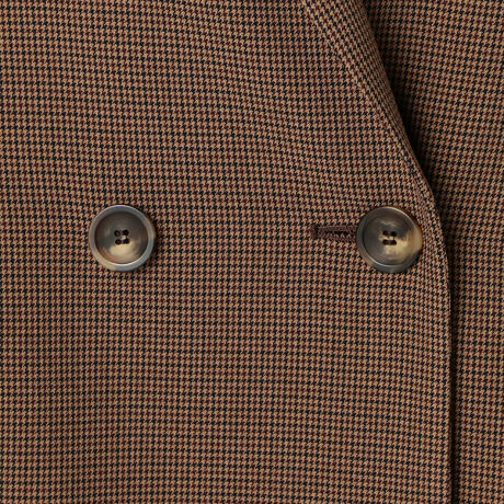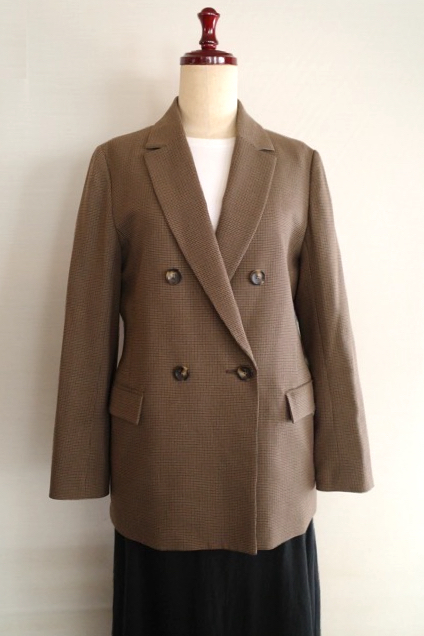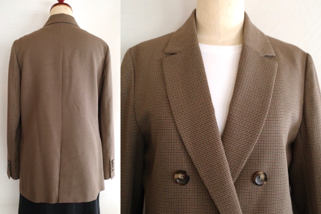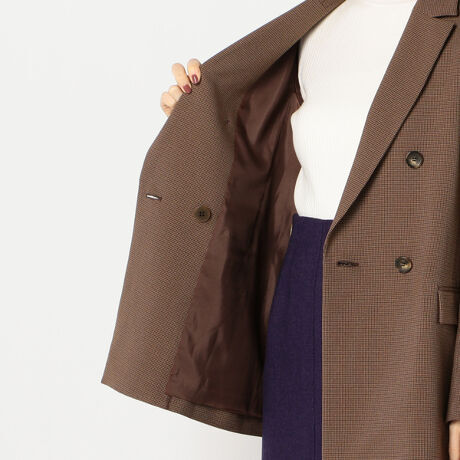 「ガンクラブチェック柄のダブルブレストジャケット。