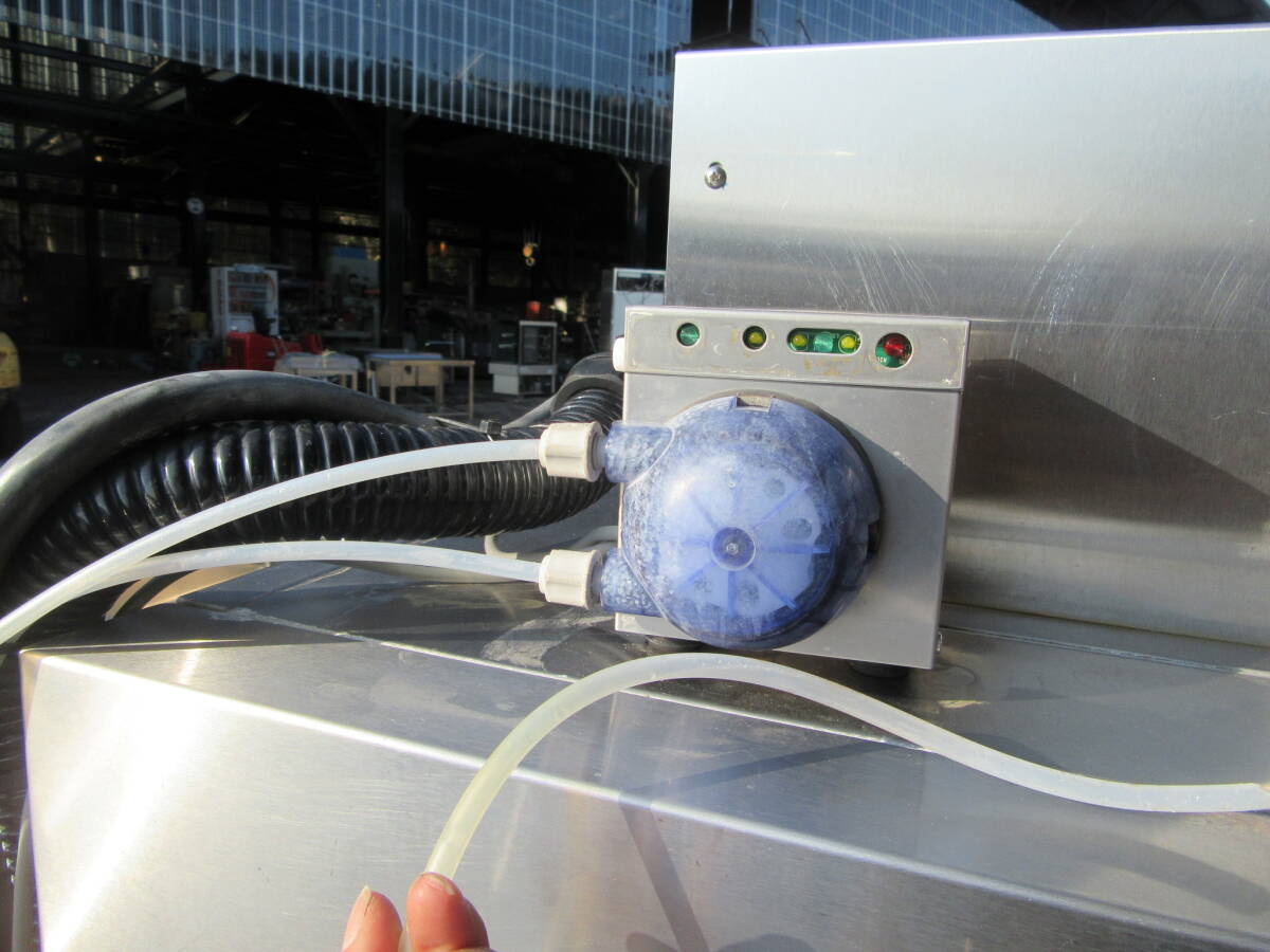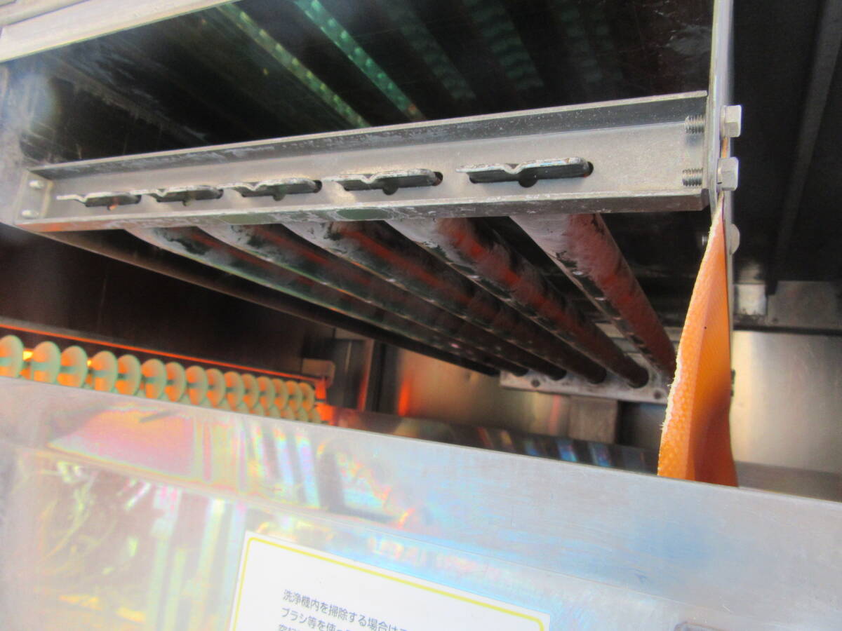 まず、三相200Vでコンベアの動きはOK! コンベアのスピード調整もOK!  ポンプが2か所あって上からと下から水が出て食器洗浄するんだが、このポンプ部分もOK!  洗剤を入れて噴射させるポンプもOK!  全体的な動きはすべてOK! モーターのがたつきやガリ付きもなく、ベアリングも問題ない。 チェーン一体式コンベアなのでグリスなどの汚れもなく見た目もすんごくきれいです。
