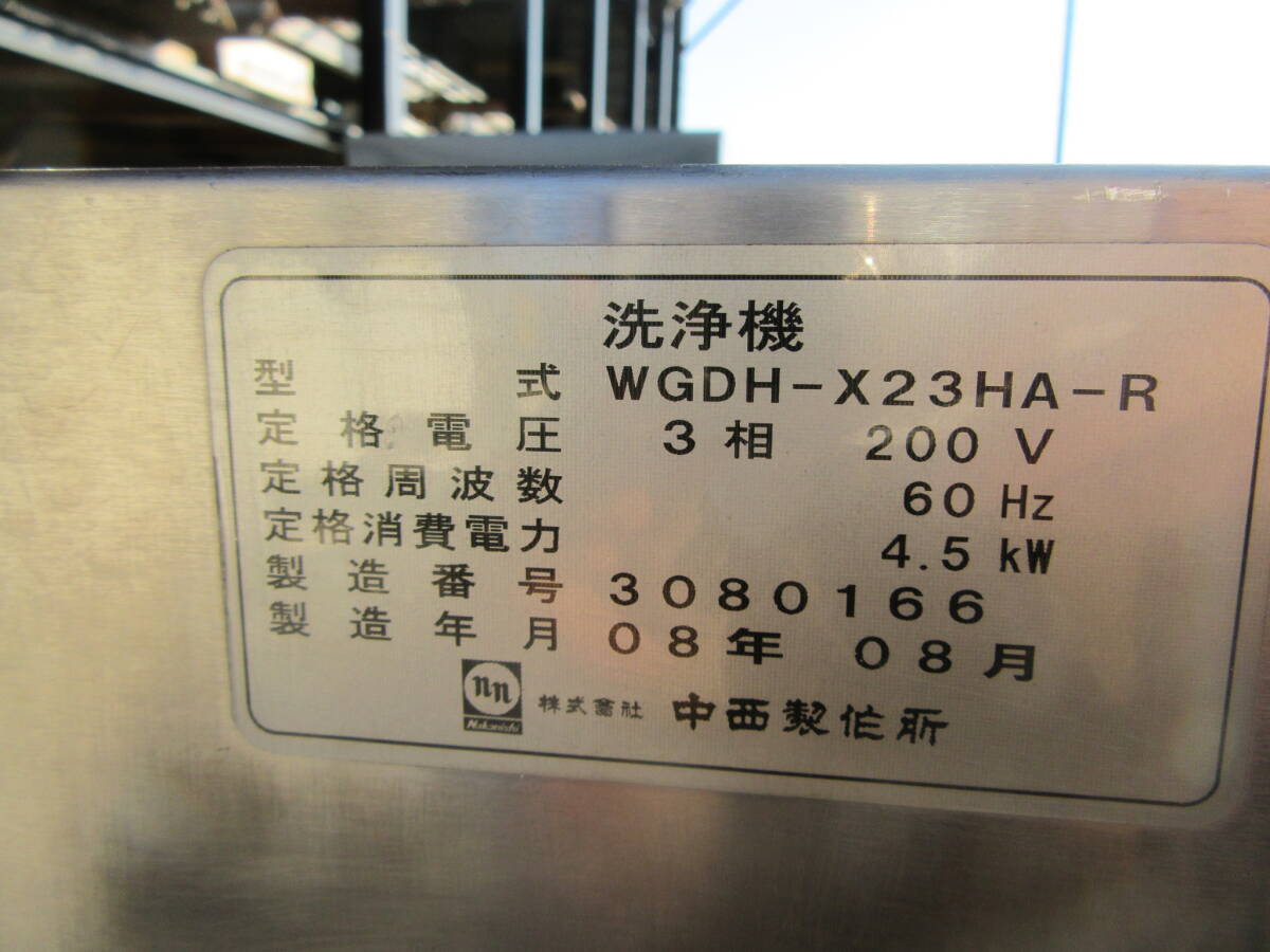 油谷 №5571 食器洗浄機 中西製作所 WGDH-X23HA-R コンベア式 食洗器 電気式 熱湯洗浄機 温水洗浄機 集団給食 大型 業務用 洗浄機 中古