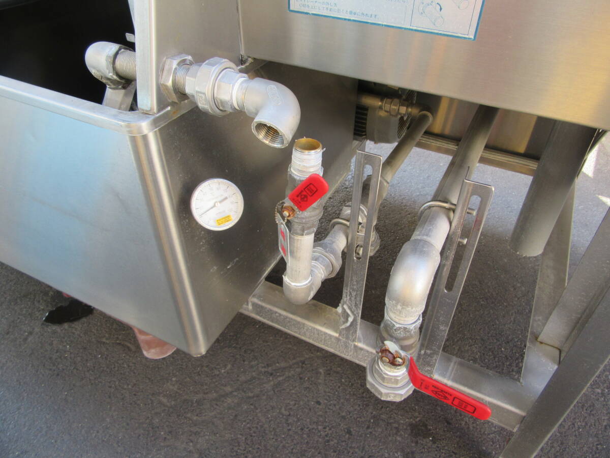 このタイプは集団給食場でよく使うやつです。 回転釜の水蒸気ボイラーがセットしてあるところで使う用なのでボイラー機能は外部据え付けタイプです。