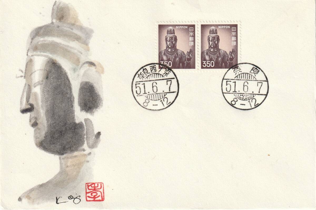 FDC 1976年  普通切手  350円2貼2消し   肉筆藤井孝次郎