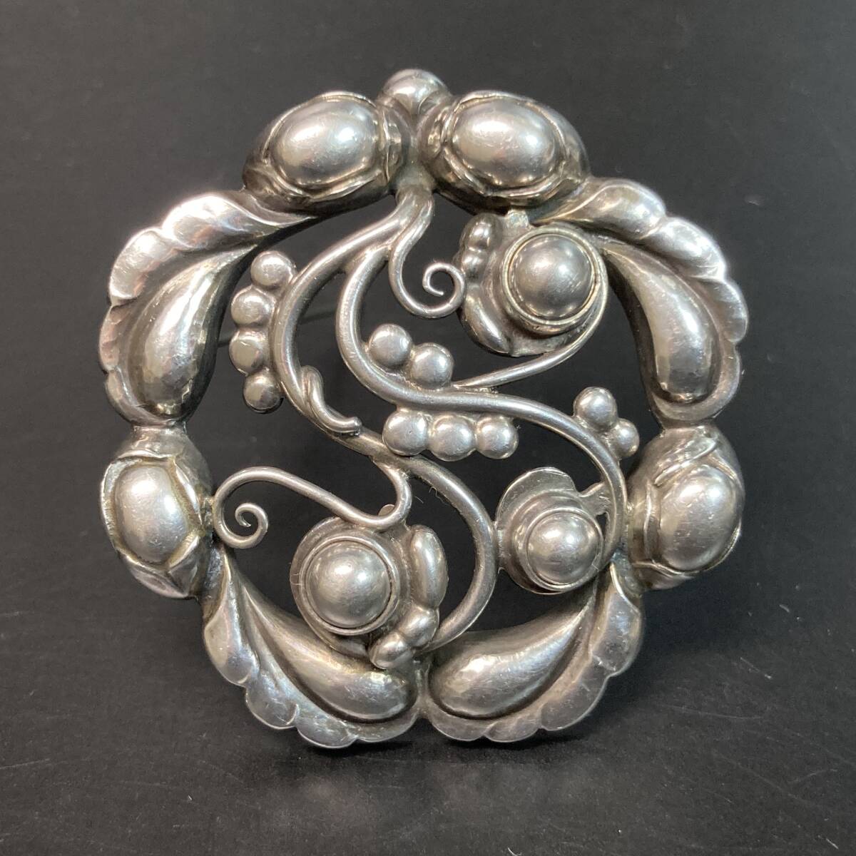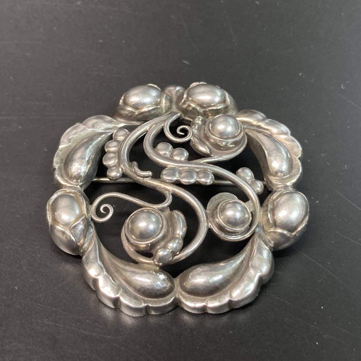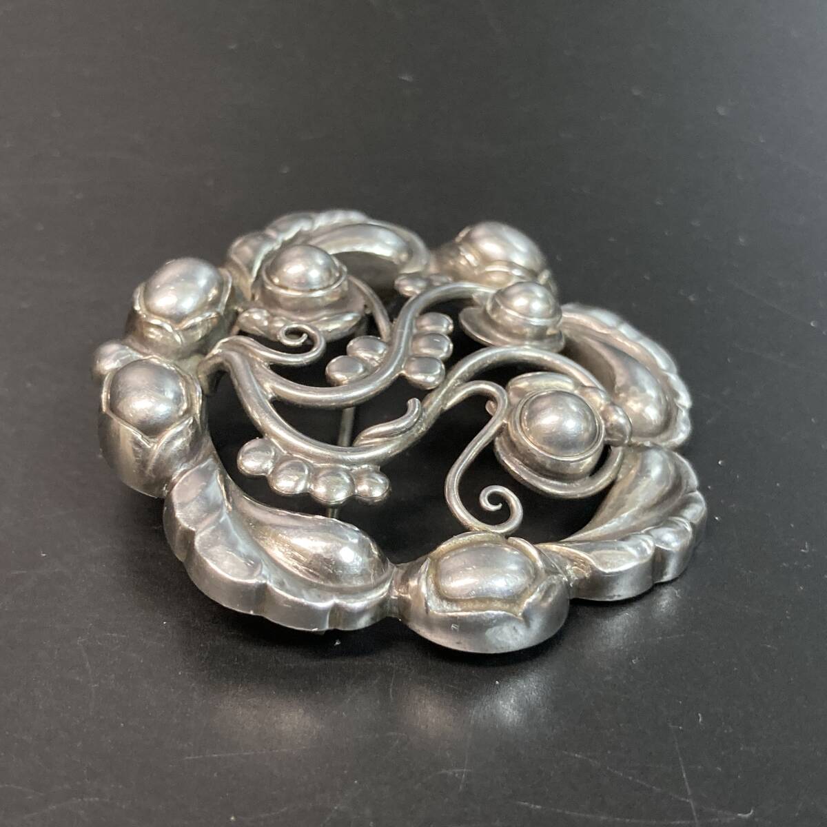 【最高級】ジョージ・ジェンセン ムーンライト ブロッサム ブローチ シルバーボール 925 アール・ヌーヴォー 純銀 ジュエリー