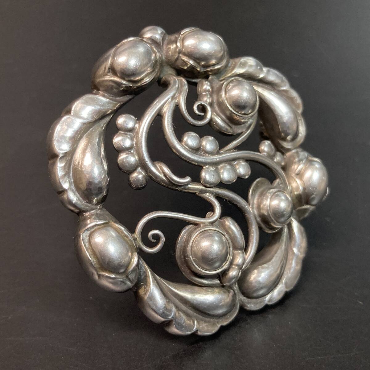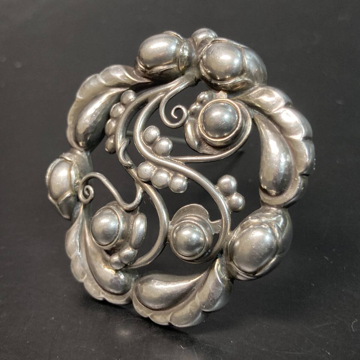 【最高級】ジョージ・ジェンセン ムーンライト ブロッサム ブローチ シルバーボール 925 アール・ヌーヴォー 純銀 ジュエリー 廃盤