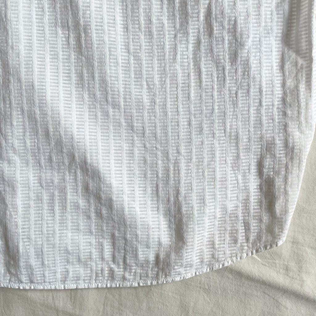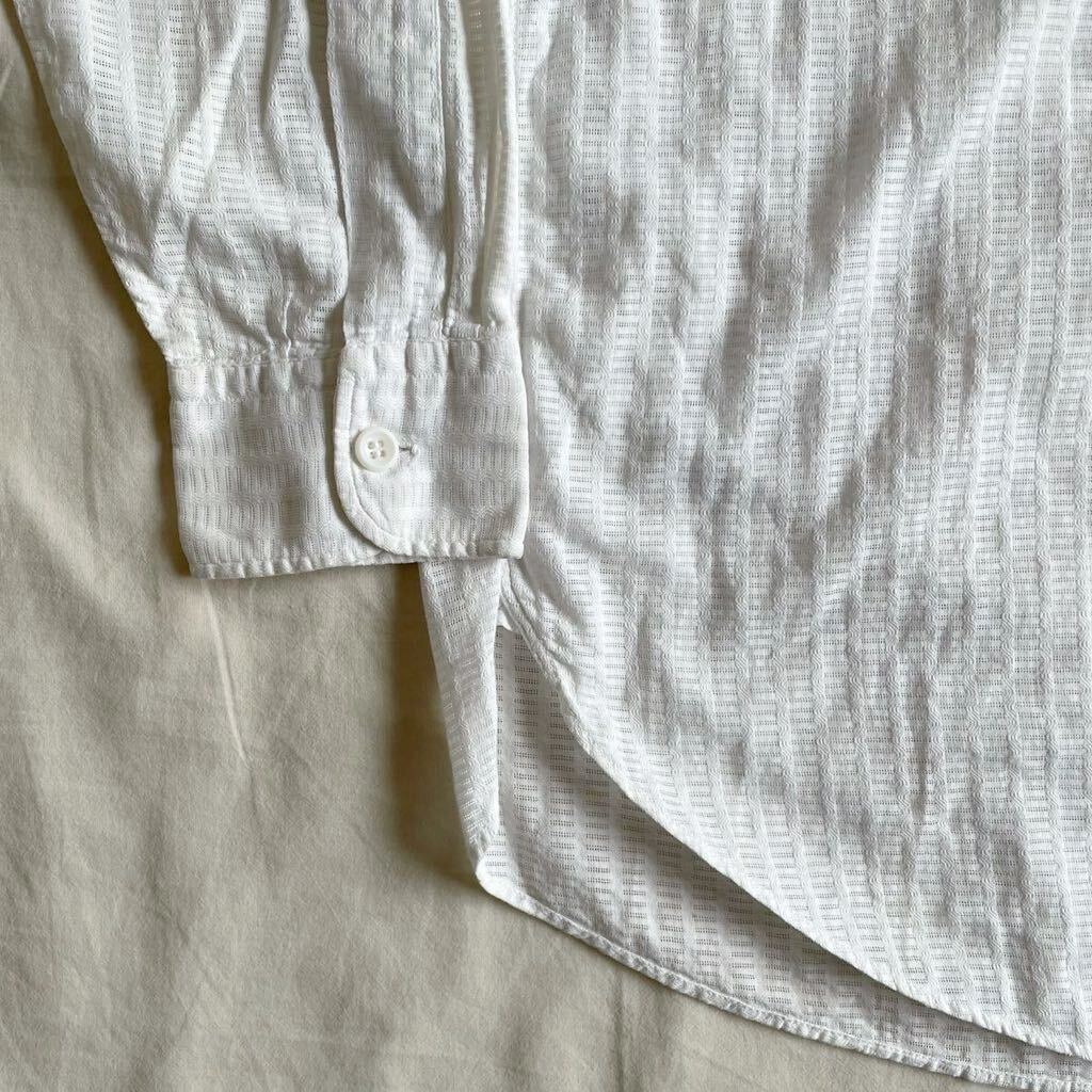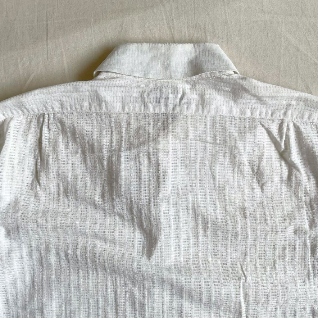 生地が特殊な織りで細かいメッシュのようになっており、ストライプ柄見えする珍しい1枚です。