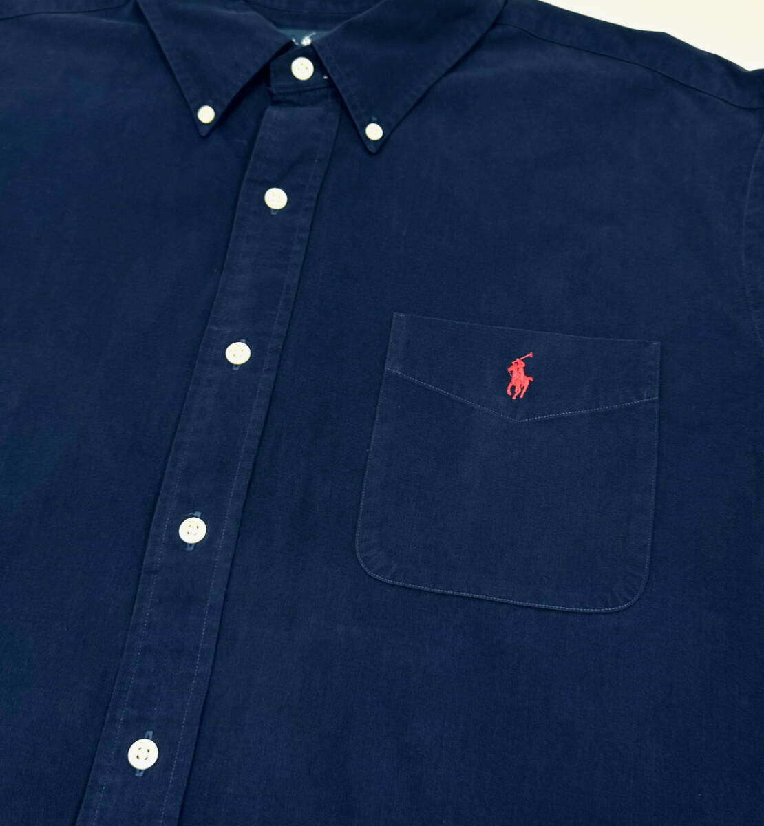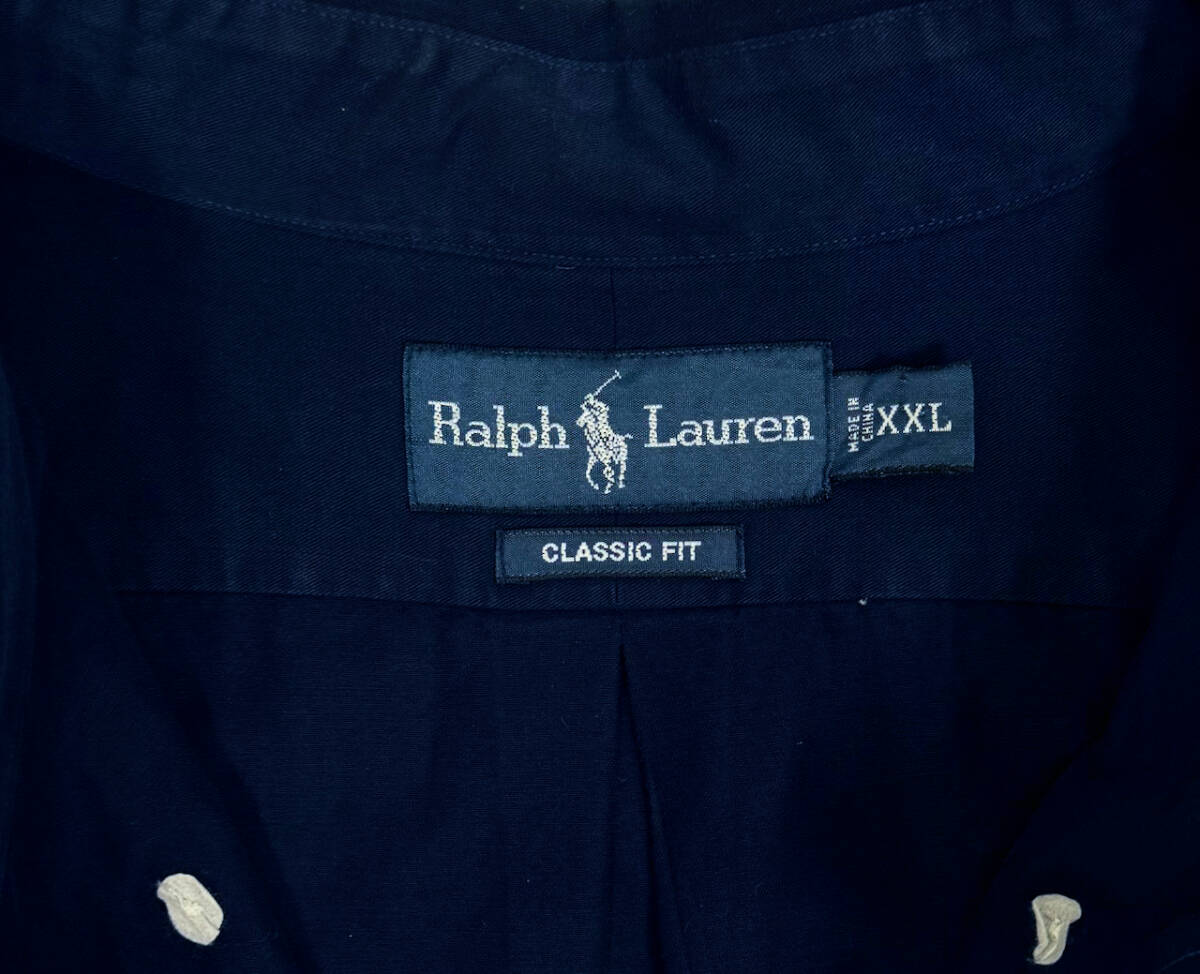 希少サイズ 1990s Ralph Lauren CLASSIC FIT L/S Cotton shirts XXL Navy オールドラルフローレン コットンシャツ ポニー