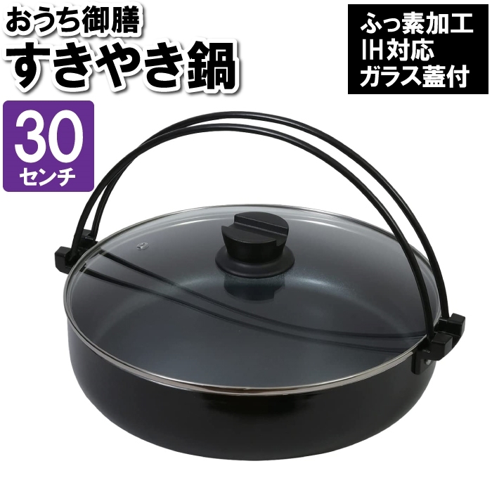 ガラス蓋付 すき焼き 30cm ふっ素加工 IH 蓋付 豪華 贅沢飯 お祝い 誕生日 肉料理 鍋料理 |