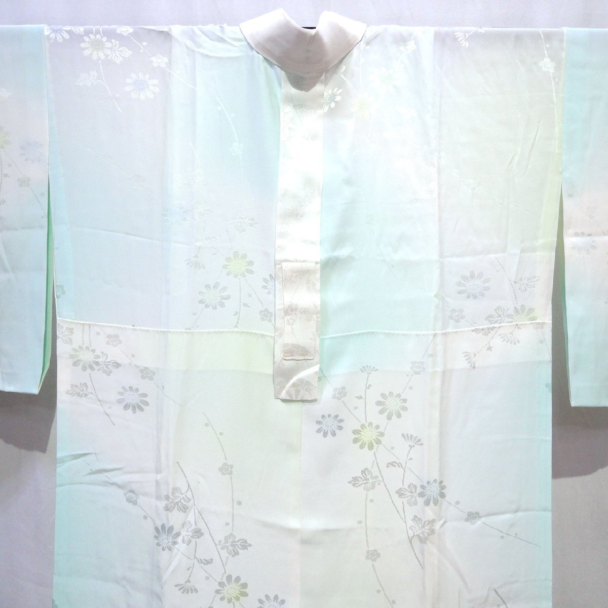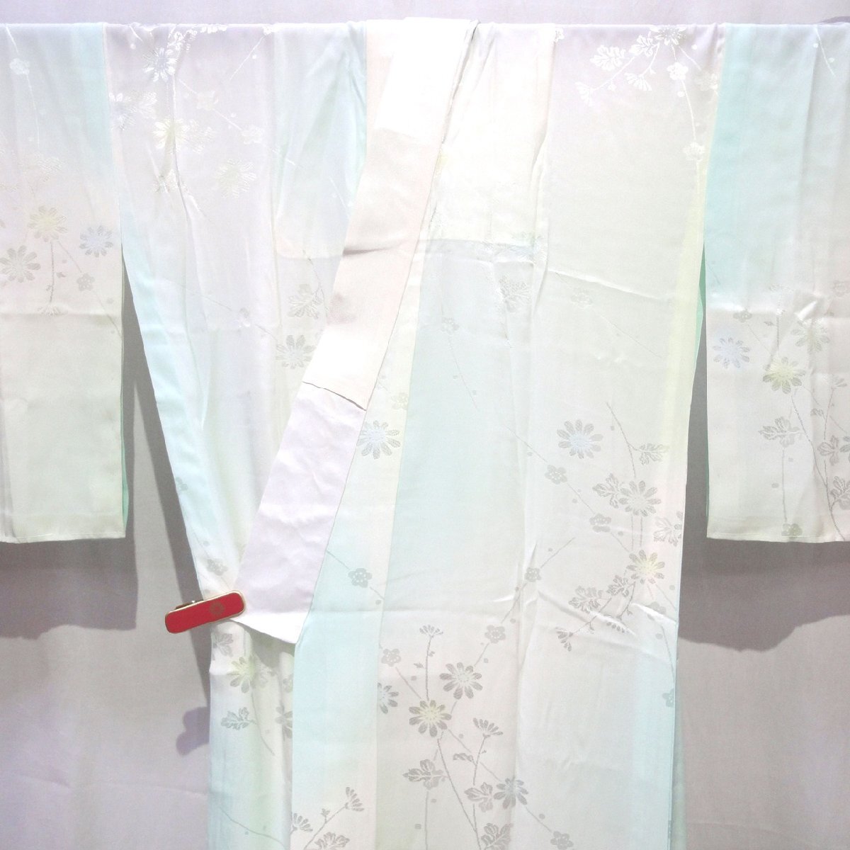裄:約65㎝、袖:約48㎝、身丈:約136㎝、後幅:約31㎝、前幅:約28㎝、状態ランク:B 商品は画像に写っているものが全てです。衣紋抜きに点シミ、黄変が見受けられます。その他状態は画像をご確認ください。