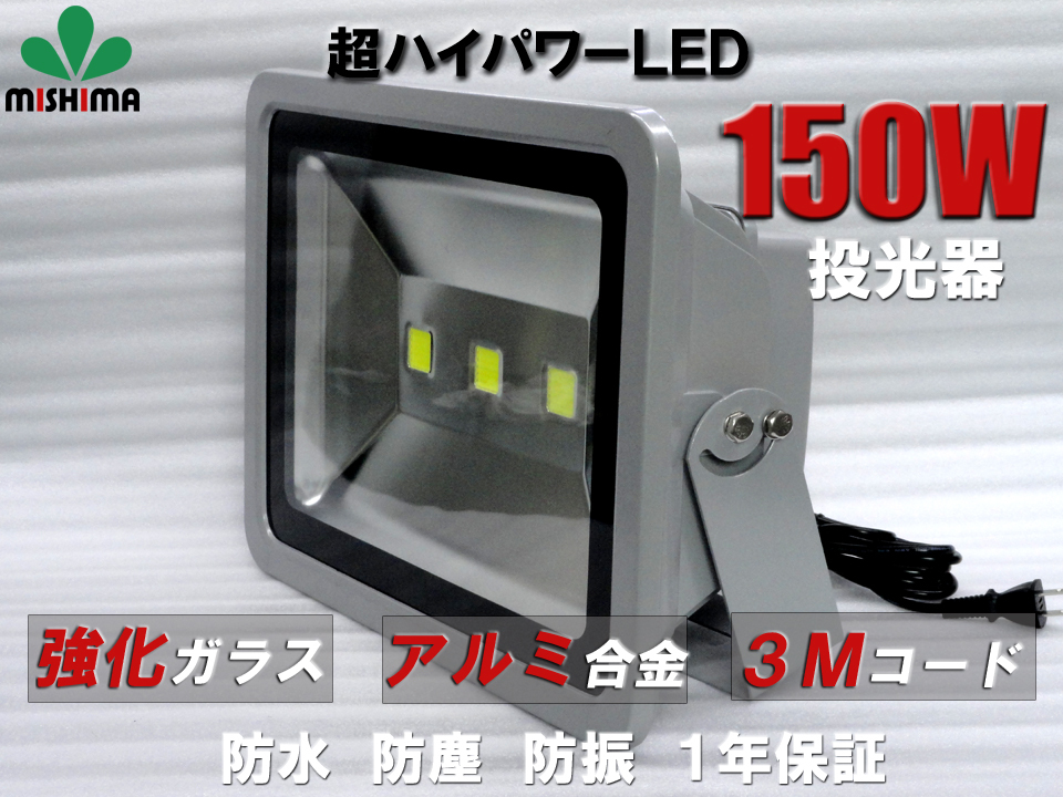 ●SMDチップ搭載のLED投光器150Wは従来の1500Wに相当する明るさを提供します。