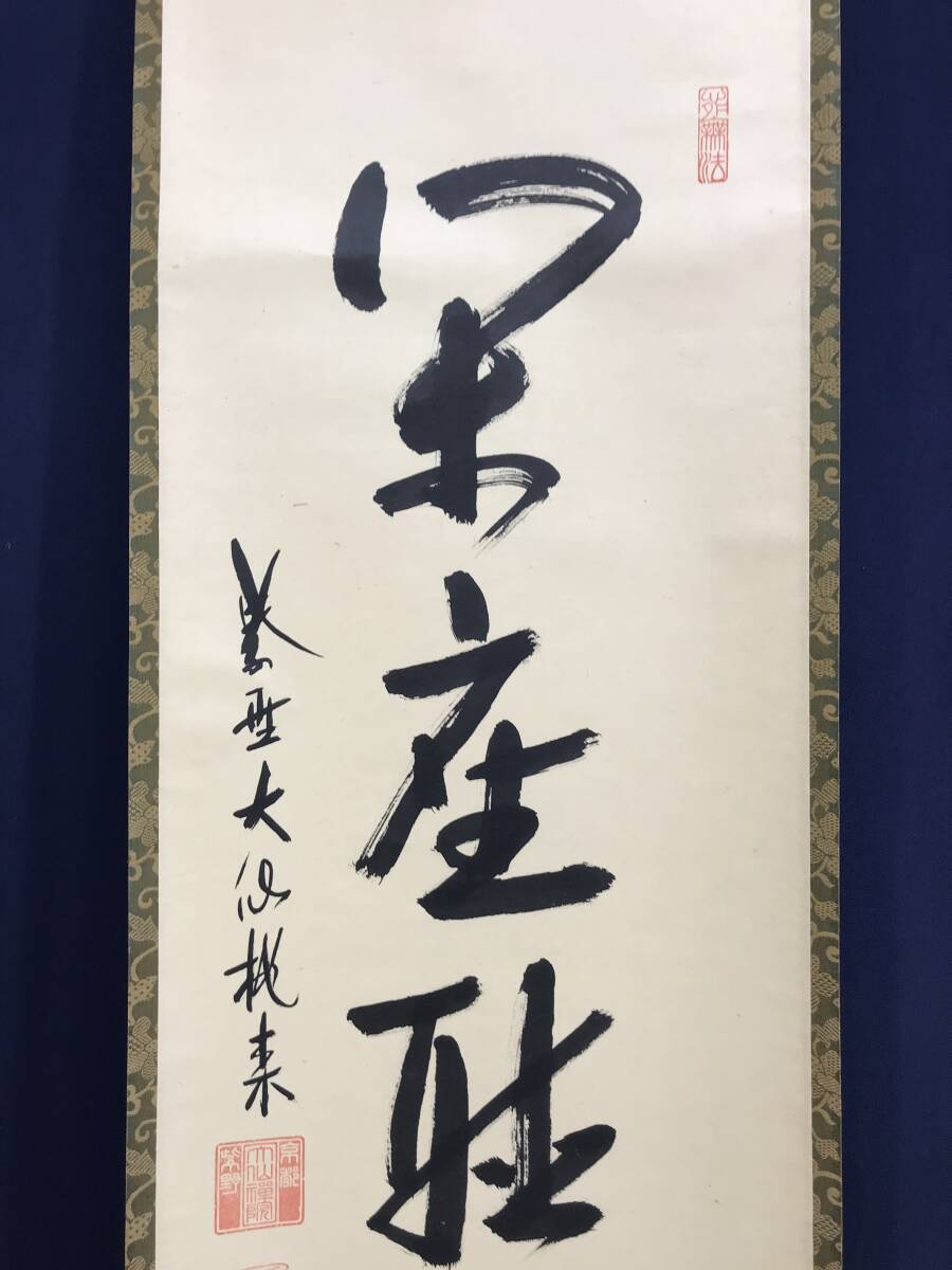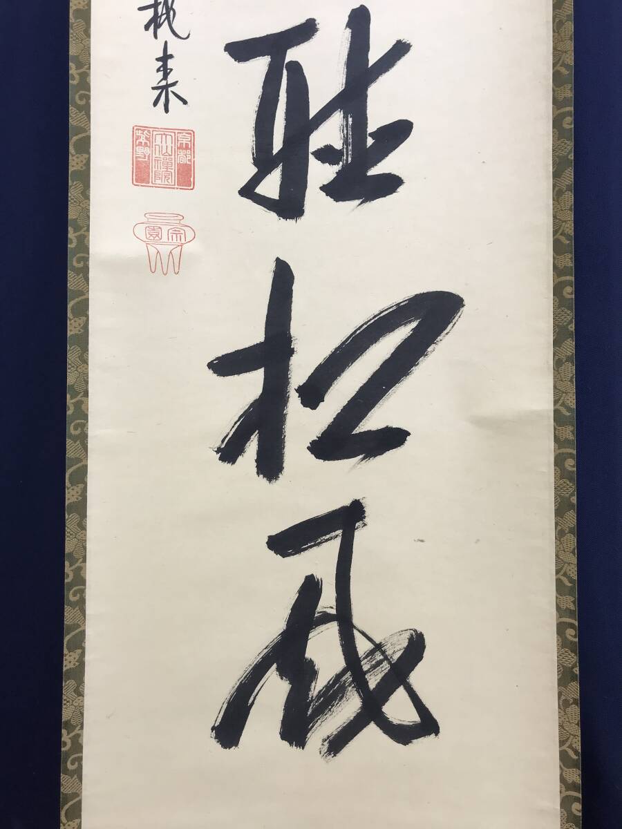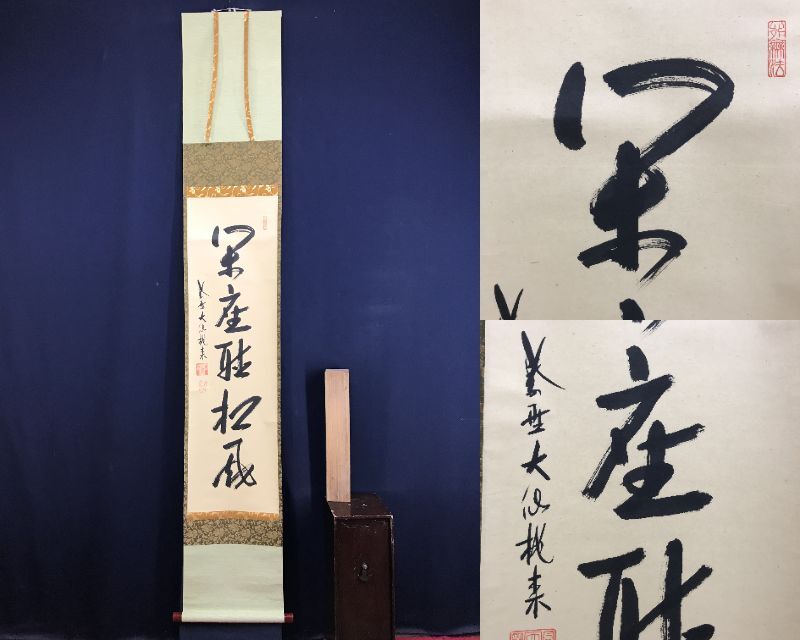 真作/大徳寺/紫野大仙桃林/尾関桃林/一行書/閑座聴松風/茶道具/茶掛/禅語/掛軸☆宝船☆AF-172