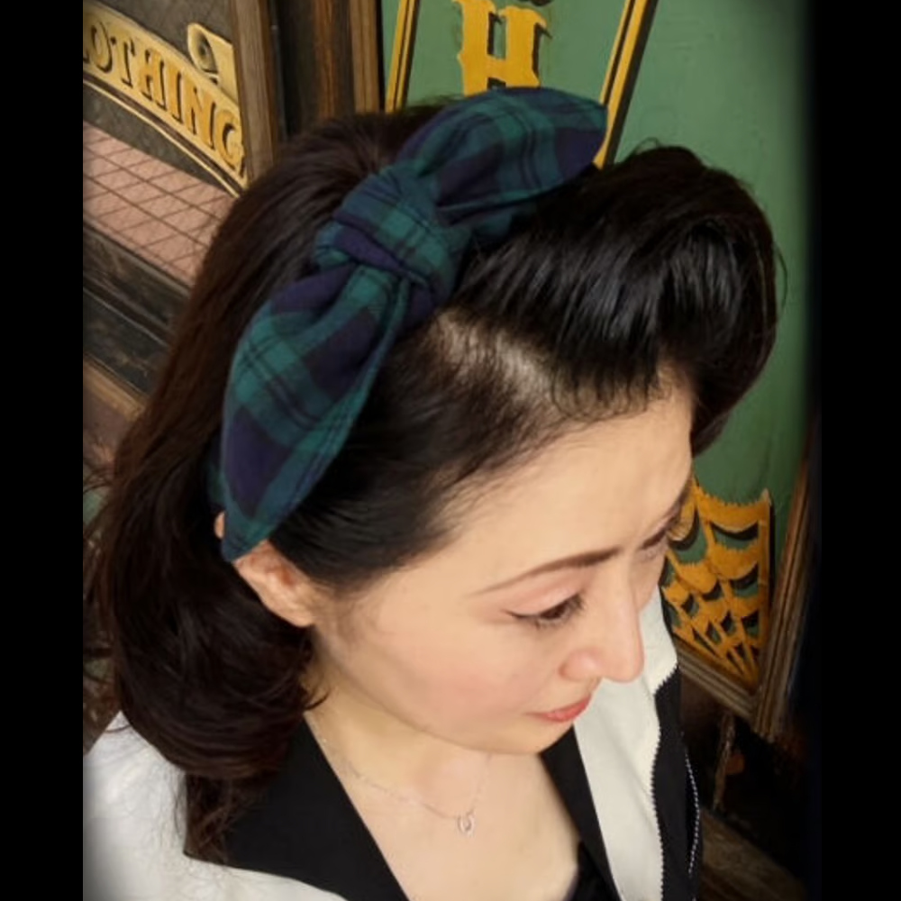 Savoyレディースオリジナルの、タータンチェック柄のヘアタイ