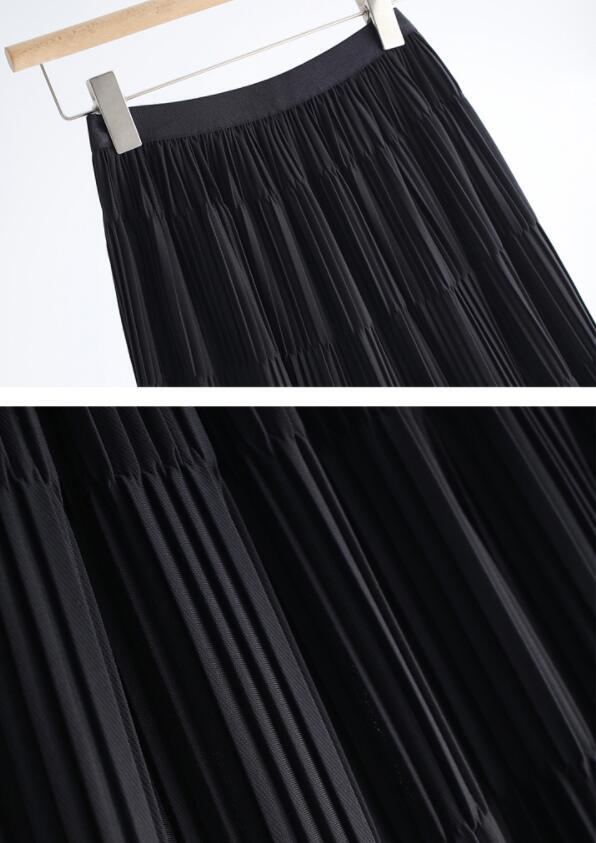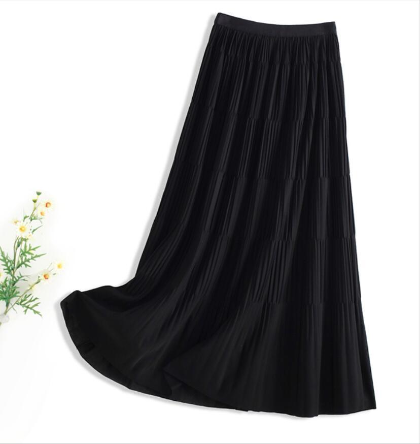 新入荷~オシャレ スカート レディース プリーツ ロング シフォン ゆったり 素敵な フレアロングスカート 着やせ 大人~ ブラック
